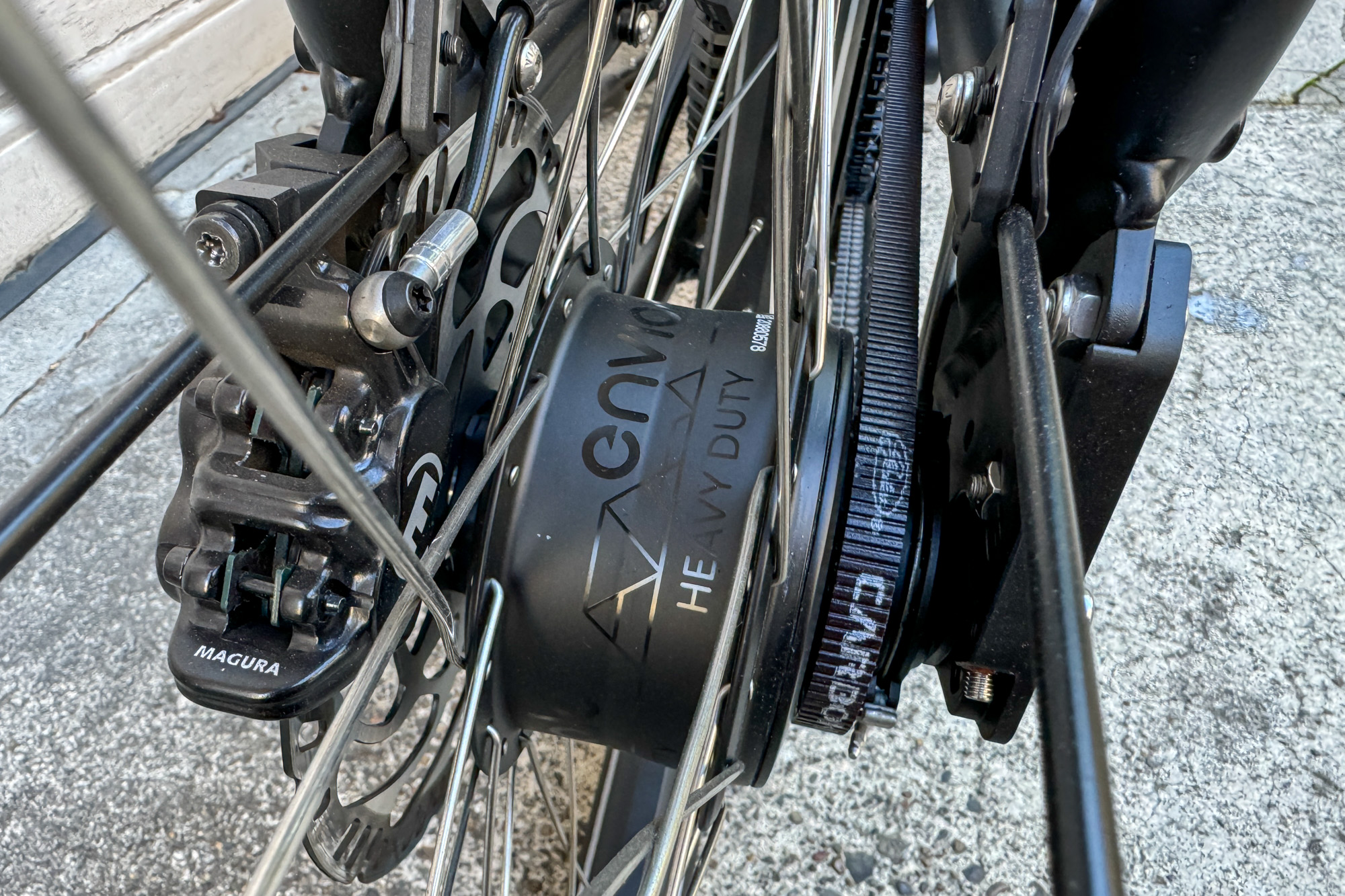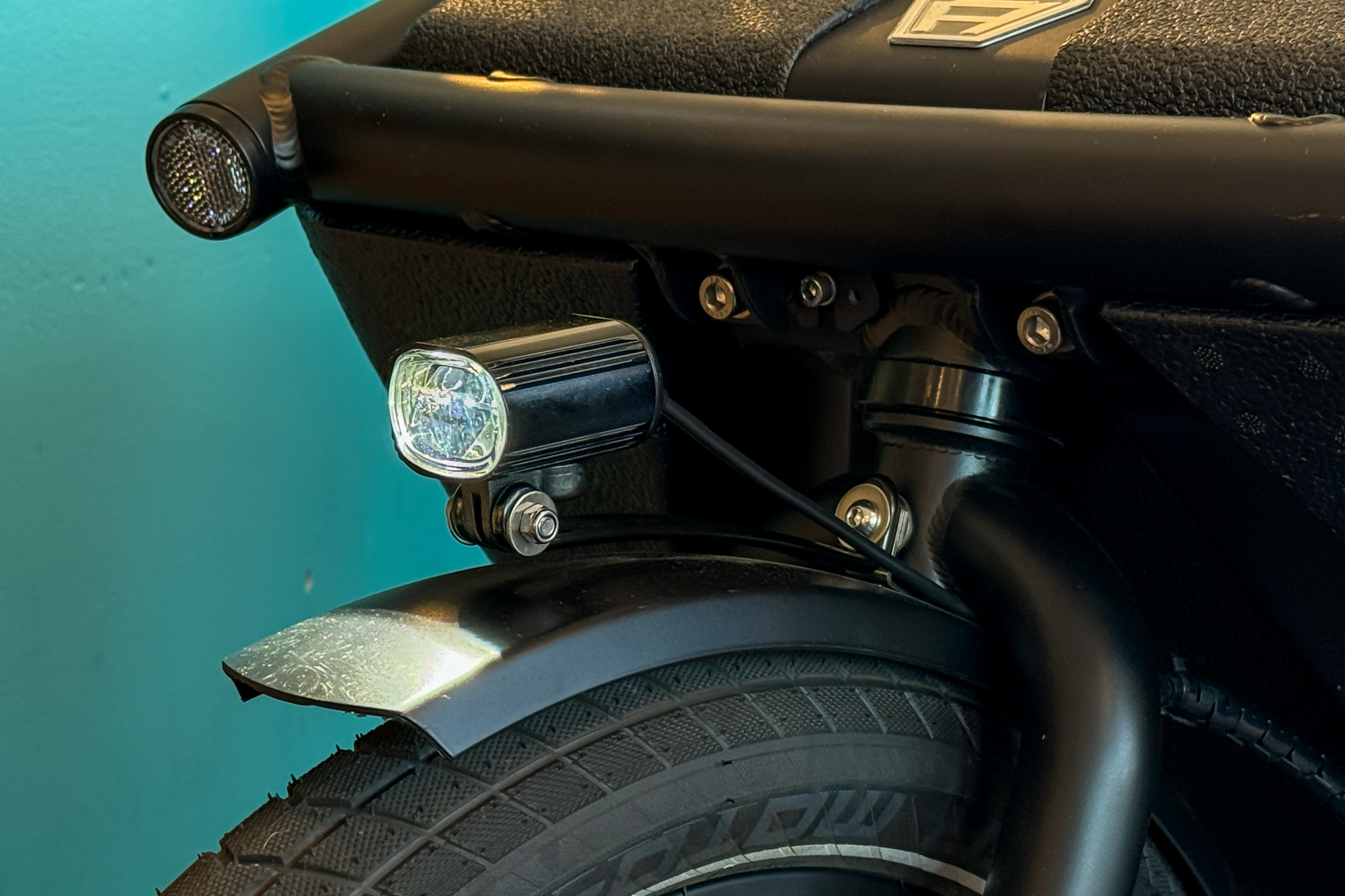 Besides the included rear wheel lock, it wasn’t super easy to lock this bike up on a normal bike rack. Most good locks are too short to reach the frame from the bike rack. You’ll likely want to carry a long burly chain to protect this pricy machine. Sadly, that adds even more weight to this heavy bike.