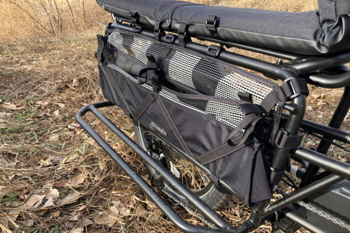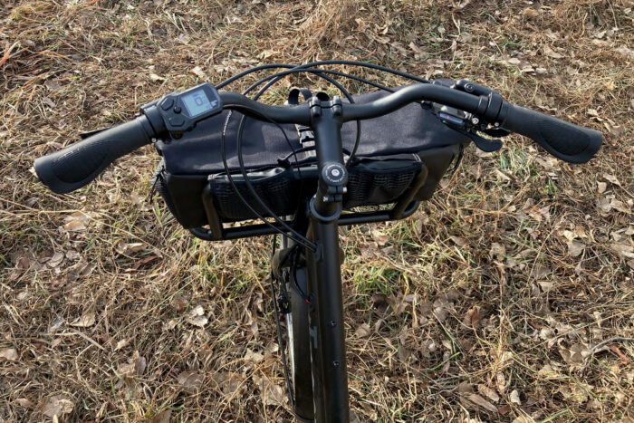 The Swoop 2.0 comes with two FreeLoader Too saddle-style bags. These lay flat against the side of the bike below the seat pad and out of the way when hauling kids. When stowed, they acted as a guard to keep wayward straps or clothing from entering the rear wheel’s spokes. They popped open very easily to secure more gear as needed.