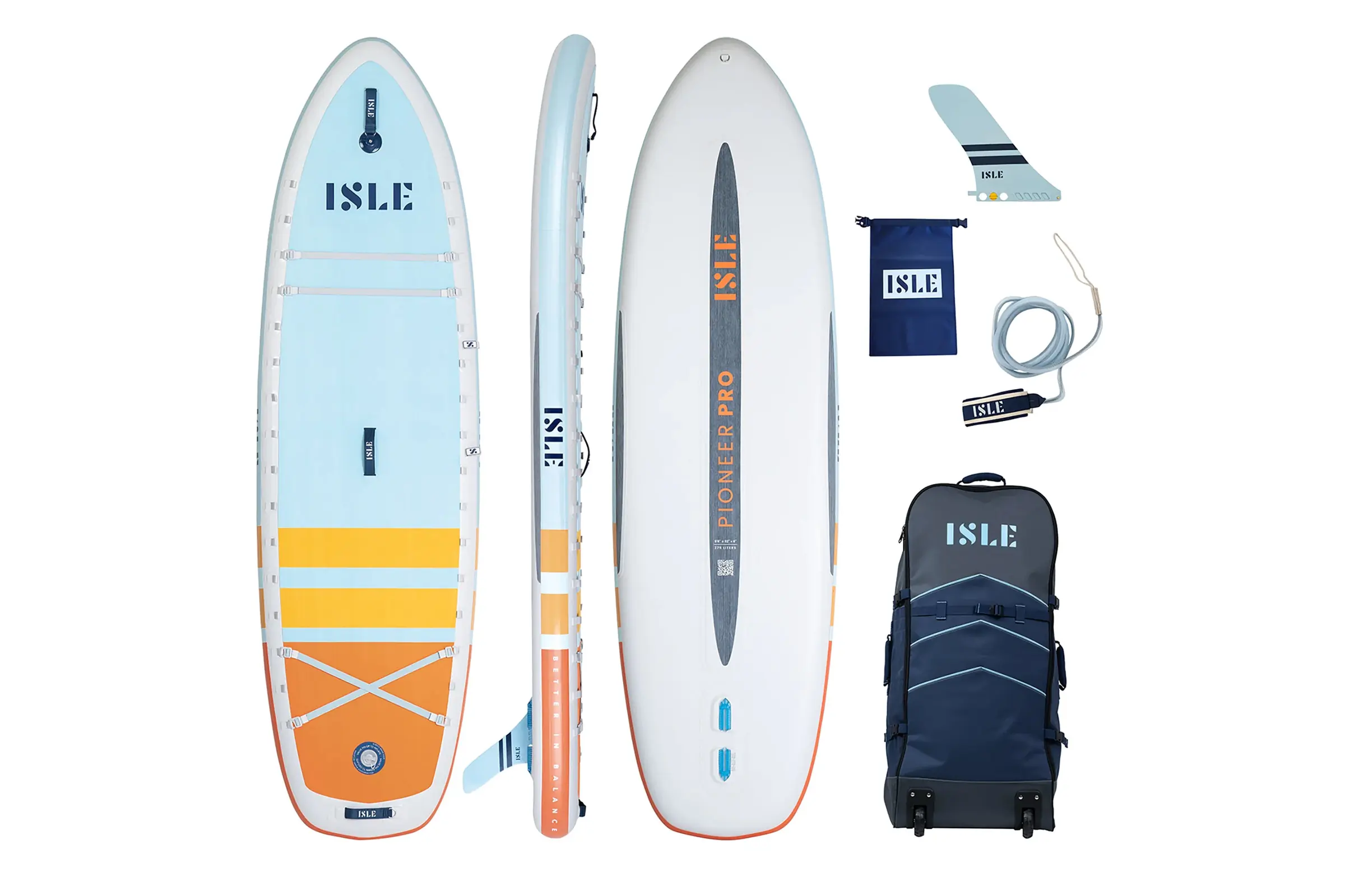 Isle uses Infinity Fiber in the Pioneer Pro’s rails (the sides of the board) and beam (the center of the board on the top and bottom) to give it structural stiffness that’s leaps and bounds above other boards on the market. We tested this claim when the Pro first launched. Other adjustments also include using a woven fabric instead of a knitted fabric with PVC skin, for greater rigidity and lighter weight. All in all, the Pioneer Pro board was a different experience. We highly recommend.