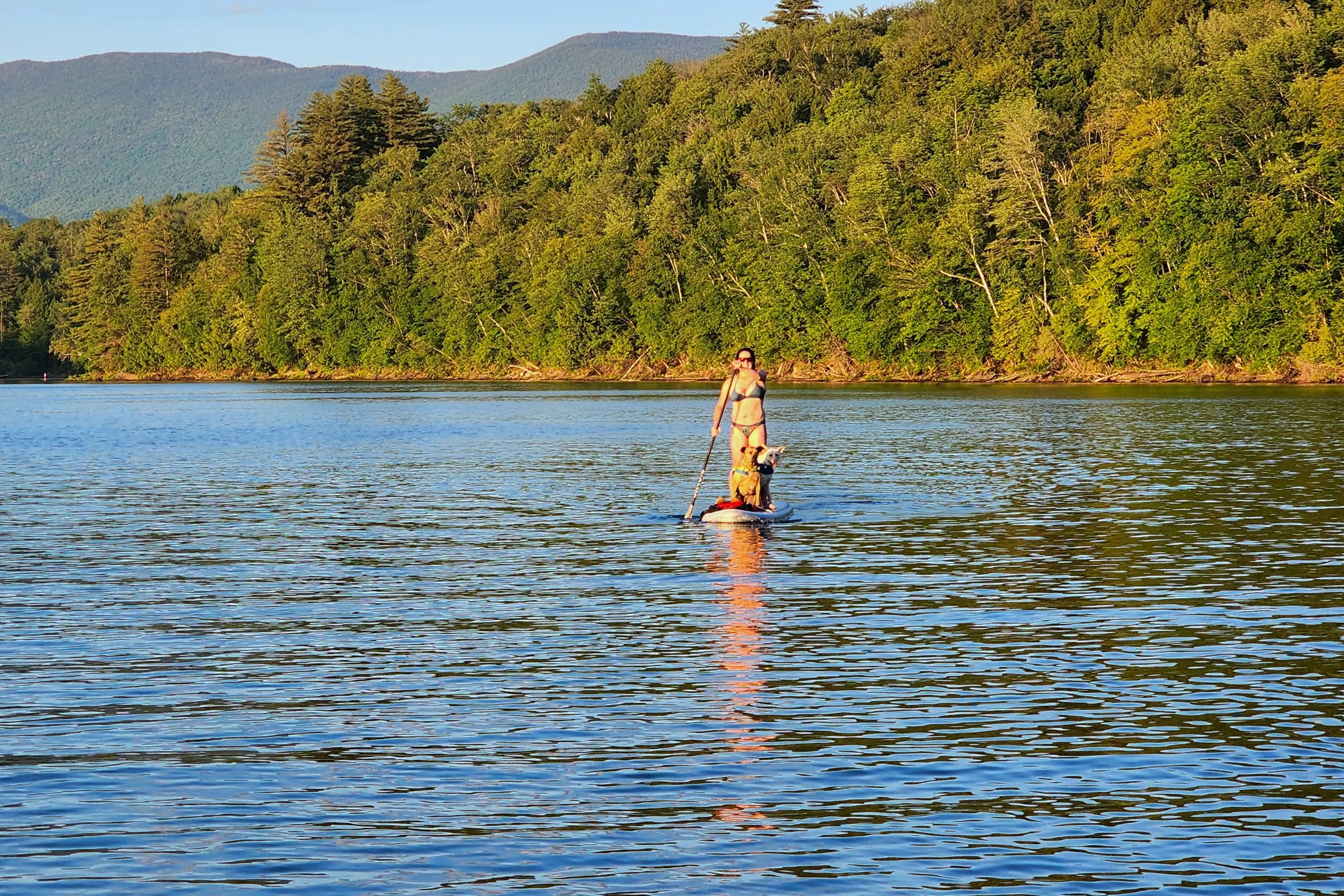 And, of course, there are weight limitations. And when a paddleboard is supporting not just the weight of a human but also gear or, say, one to three 50-plus-pound pups, that flex can be exacerbated.