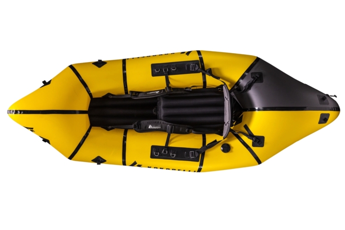 It is basically a packraft version of what you see in every river-running hardshell kayak. In the event of a capsize, you can release the skirt with a pull loop at the front of the boat.