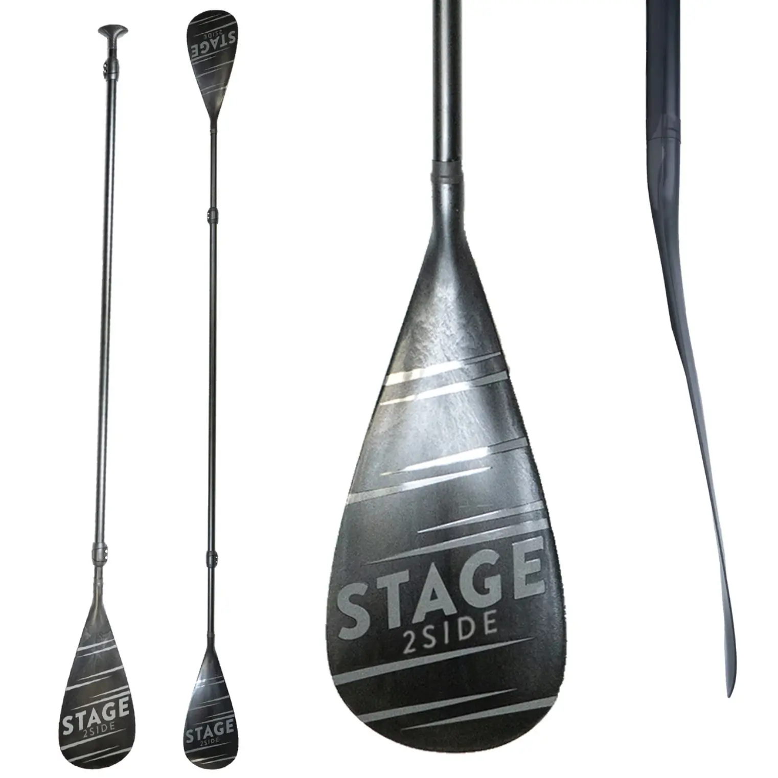 STAGE currently offers three major options for the 2SIDE double-bladed SUP paddle. There’s an aluminum and fiberglass paddle, a 60% carbon paddle, and a 100% carbon paddle with either standard or 100% carbon fiber blades. The blades also vary with a couple of material options: polypropylene and carbon fiber.