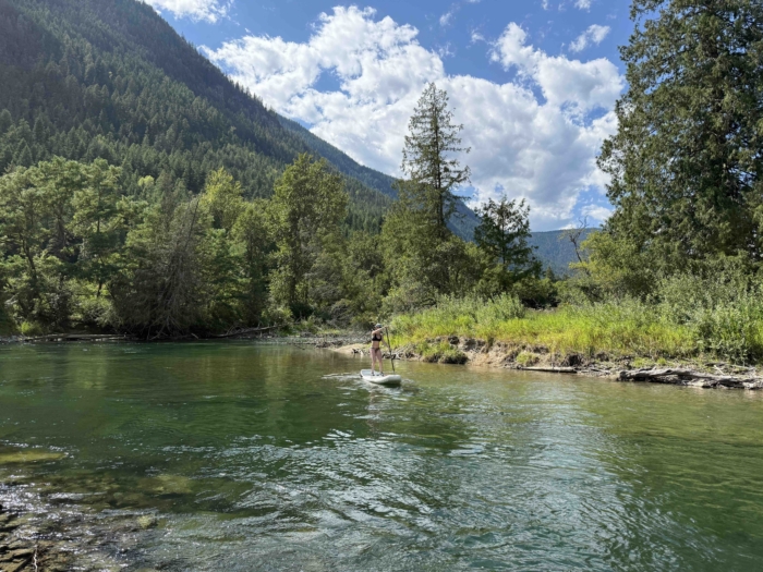 We recently swapped the Clean 96 for its longer sibling, the 11-foot-long NRS Clean 110 ($1,095), during a series of paddle adventures around British Columbia on lakes and rivers. While the Clean 96 impressed us with its nimble and playful feel, which is ideal for challenging ourselves in crest-to-crest whitewater and surfing river waves, the Clean 110 brought more stability in wave trains, more glide in calm stretches, and a capacity to haul more gear.