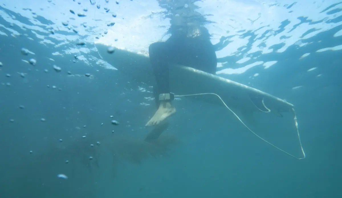 Soon, I’ve completely forgotten about the prospect of sharks and the POD attached to my leash. Fully warmed up and comfortable, I catch a peeling right-hander, and euphoria fills me as I see the sunlight glistening through the crest of the wave. I reach the shore and begin sprinting up the beach, energized by the experience and frothing to catch another wave.
