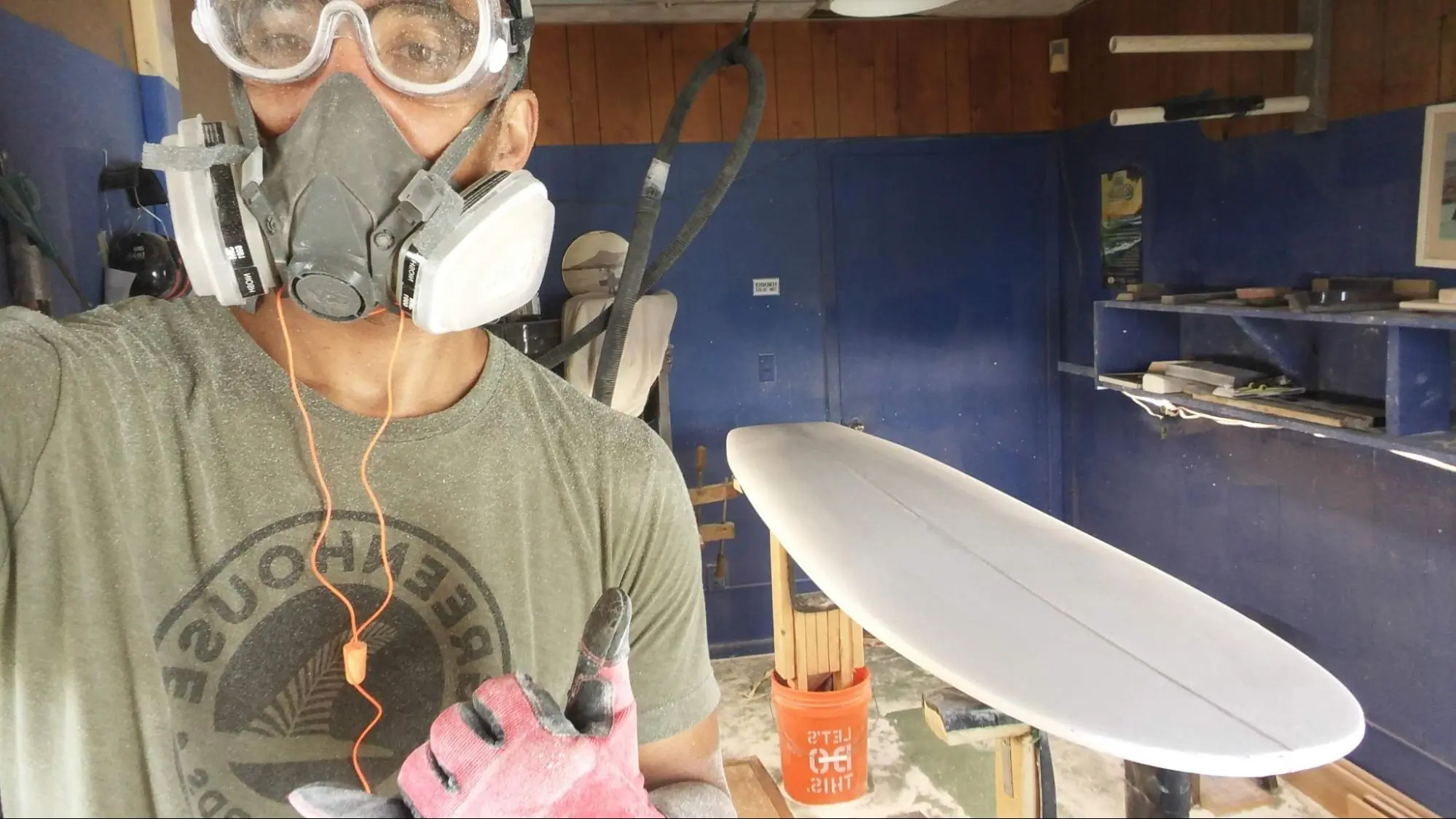 As for the design of the surfboard-in-progress? Burdett is modeling it after one of Cole’s original Greenhouse Surfboards creations: a 9-foot-6-inch single-fin pig longboard.