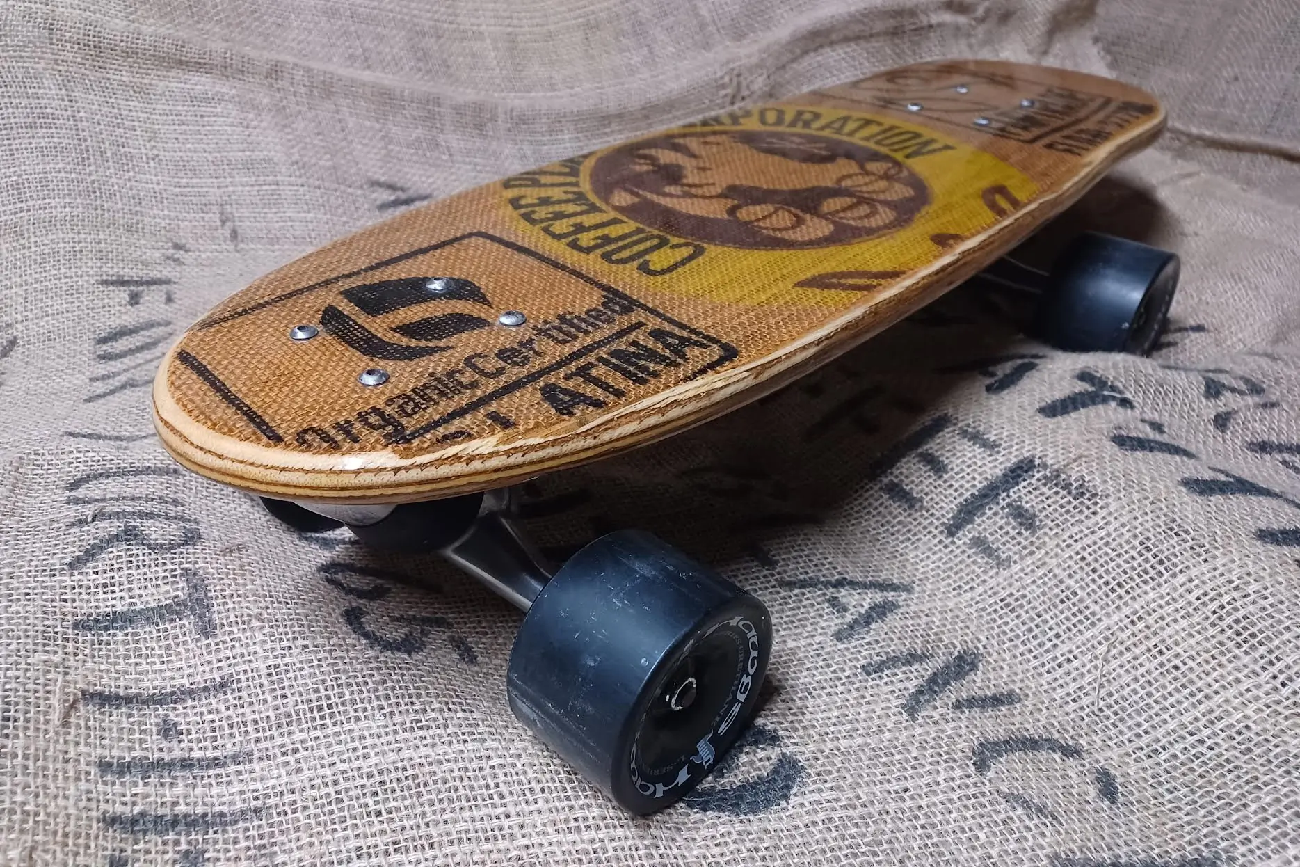 For the artwork, Cole carefully lays out pieces of jute and strips of fabric from coffee bags given to him by Al Liu at Colectivo Coffee Roasters. The look is instantly recognizable and gives his boards a classic, organic kind of feel.