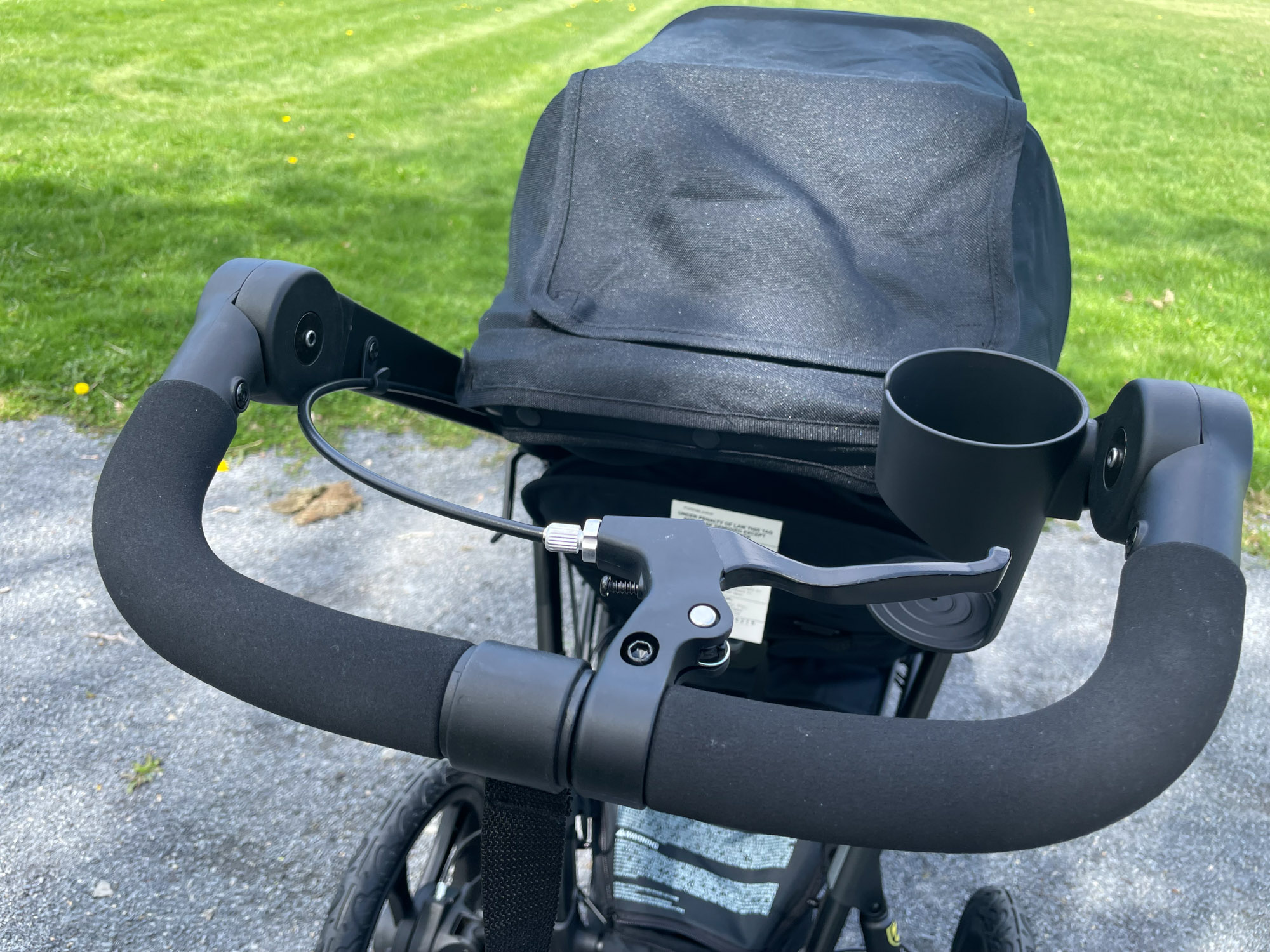 The stroller, sans brakes, will force whoever is steering the ship to lean backward and use their body weight to fight gravity. To win the fight against these forces, a handbrake can do a lot of the work and allow for good running form.
