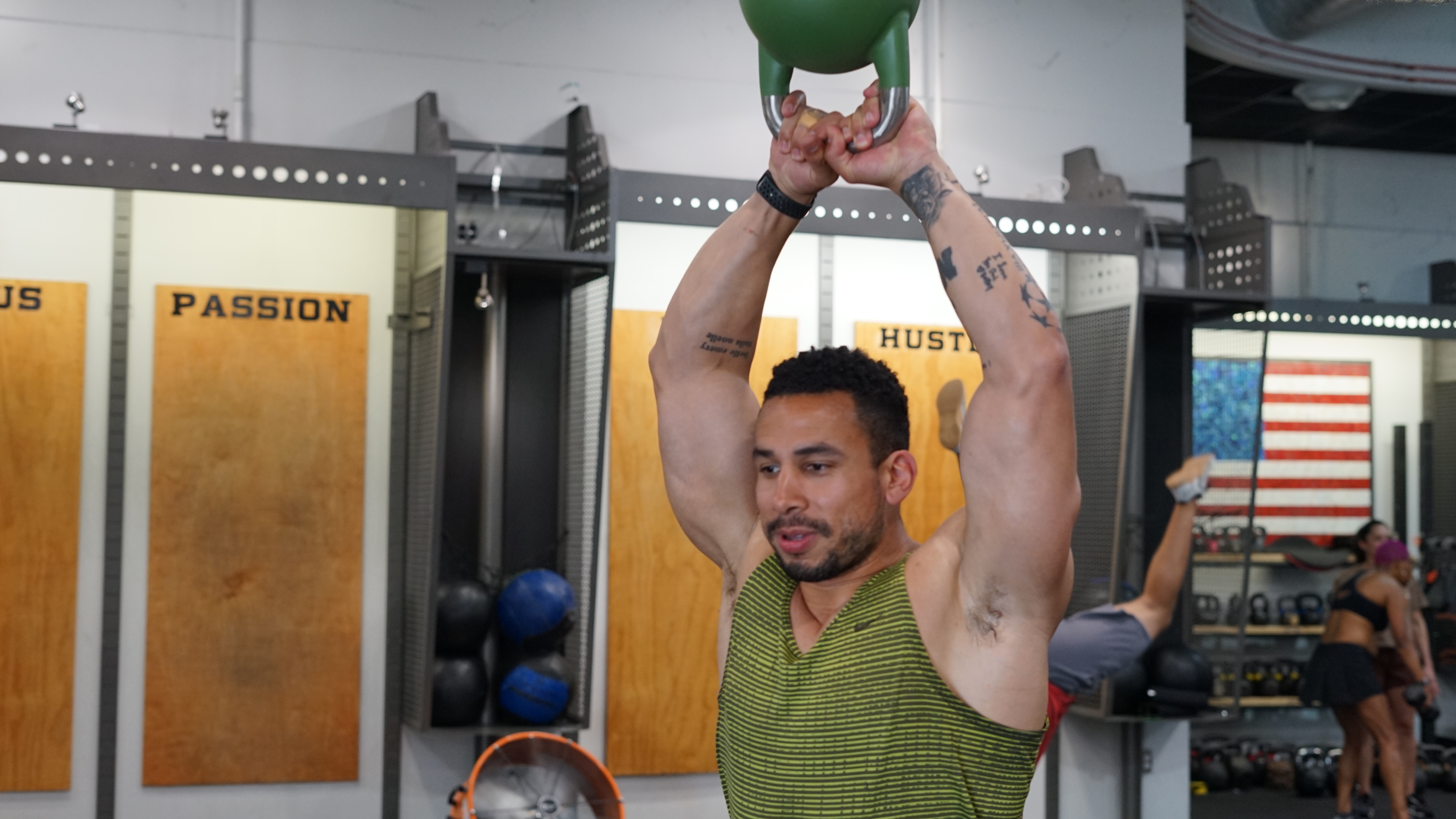 “Light” and “heavy” are relative terms, however. The standard prescribed weight in CrossFit is 53 pounds for men and 35 pounds for women. If you’re new to working out, consider lighter bells. Something in the 15- to 25-pound range should work for most beginners.