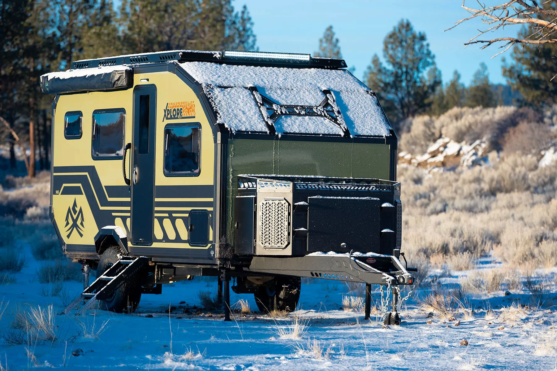 The XploreRV X145 camper is one of the best-insulated four-season overlanding trailers on the market, thanks to the implementation of techniques the company learned from building high-end ice fishing RVs. This makes it an excellent camper choice for use in the depths of winter or during the heat of summer.