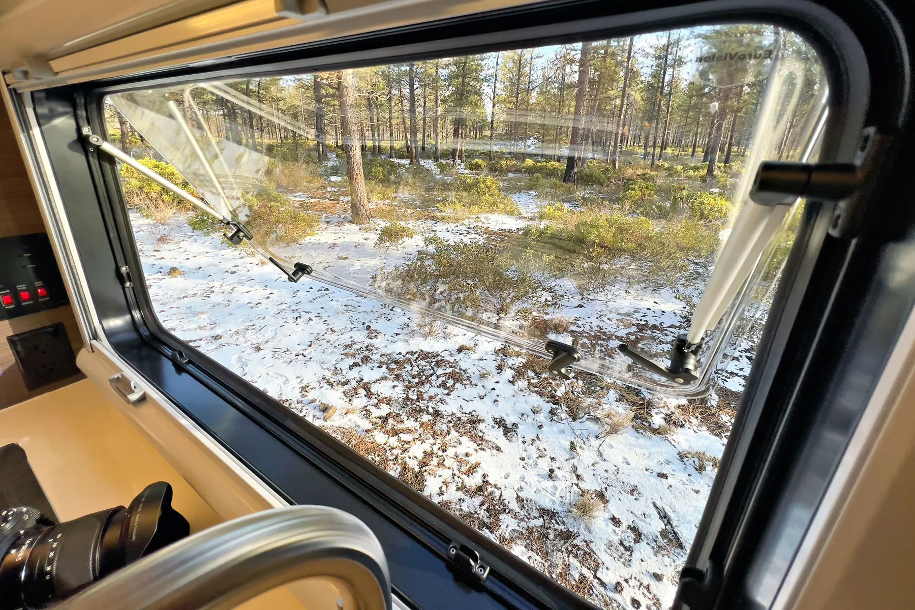 Another nice aspect of the XploreRV X145 design is the window latches. Each window in the living area has four locking latches that can be set to just crack the window open to provide a breath of air seep by the seals to prevent condensation you’d get in the winter, or the latches can be rotated to allow the windows to open from one-third to full.