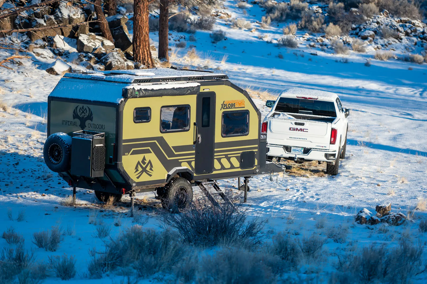 Imperial Outdoors XploreRV X145 overlanding camper is a premium-level, custom overlanding trailer built to last for decades of hard, off-the-grid, off-road, four-season use. It’s best towed by full-size half-ton pickups or vehicles that are rated to tow up to 6,200 pounds.