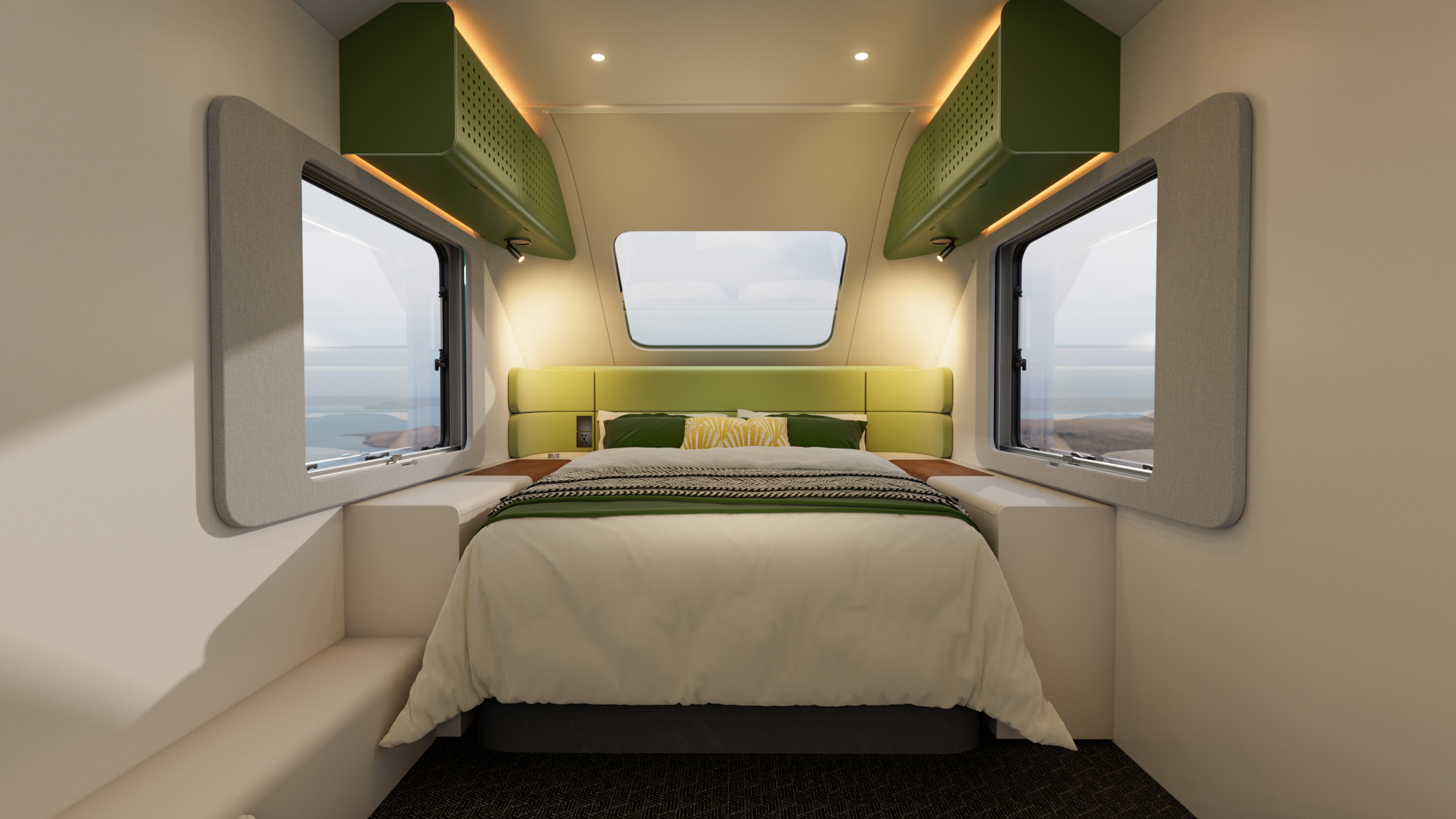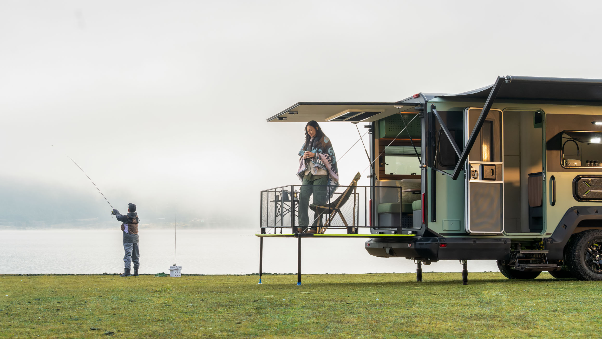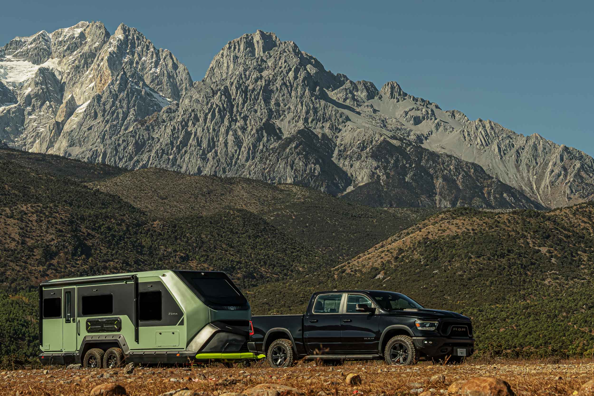 This off-road–capable and extremely luxurious travel trailer boasts high-tech features. These include its own electric propulsion system, remote-controlled parking, and a built-in power generator. And, it’s coming to market in early 2027 with pricing starting at about $120K.
