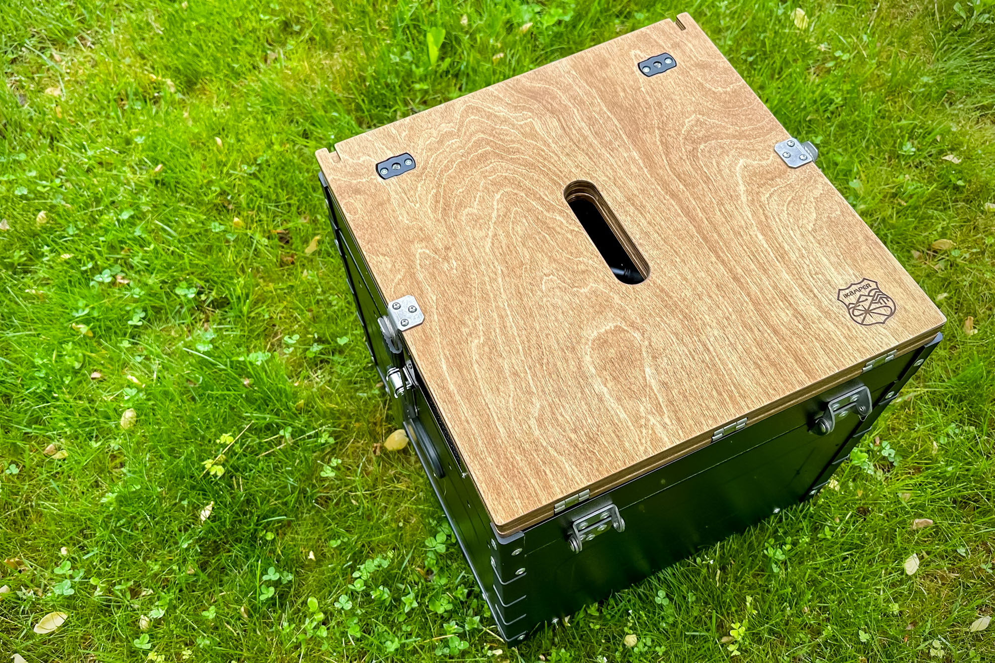 Made from powder-coated 5052 aluminum and featuring premium birch plywood table tops, the Aioks is compact and lightweight for all that it offers. The base weight of the Aioks is 20 pounds. With all of our cooking gear stored inside for transporting, the whole unit only weighed 23 pounds.
