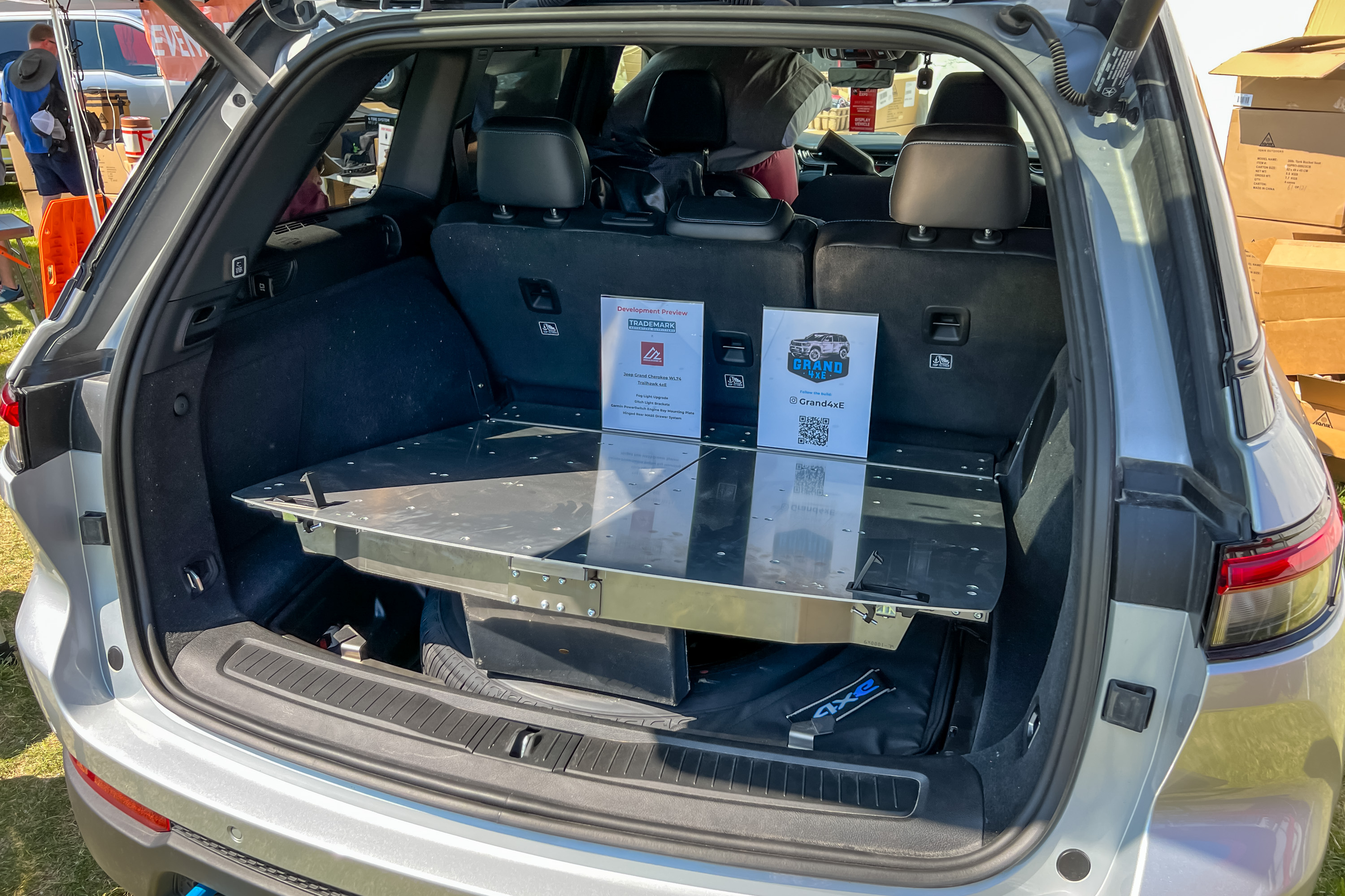 If you want to have access to the rear spare location in your new Grand Cherokee and still have a drawer system, fridge slide, or the like in the back of your vehicle, American Adventure Lab has a solution for you. The new MASS Platform for the Jeep WL is a hinged mounting plate that replaces the cargo floor in the back of your Grand Cherokee. It weighs in at about 60 pounds, hits the market later this summer, and will cost about $600.
