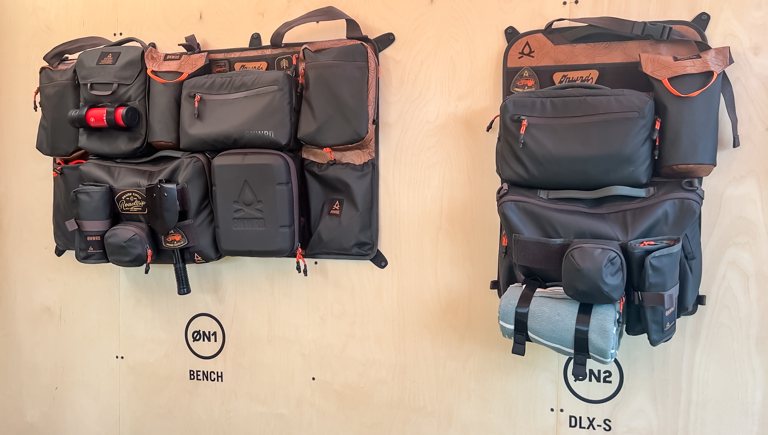 Up first are three sizes of its seat back organizing system and a headrest product. The Bench ($500), Single ($300), Single DLX ($300), and Headrest module ($100) are the launch products. These prices are MSRP, but Kickstarter launch pricing will be less. Onward Supply is a Bend, Ore., company, with products being produced in Vietnam.