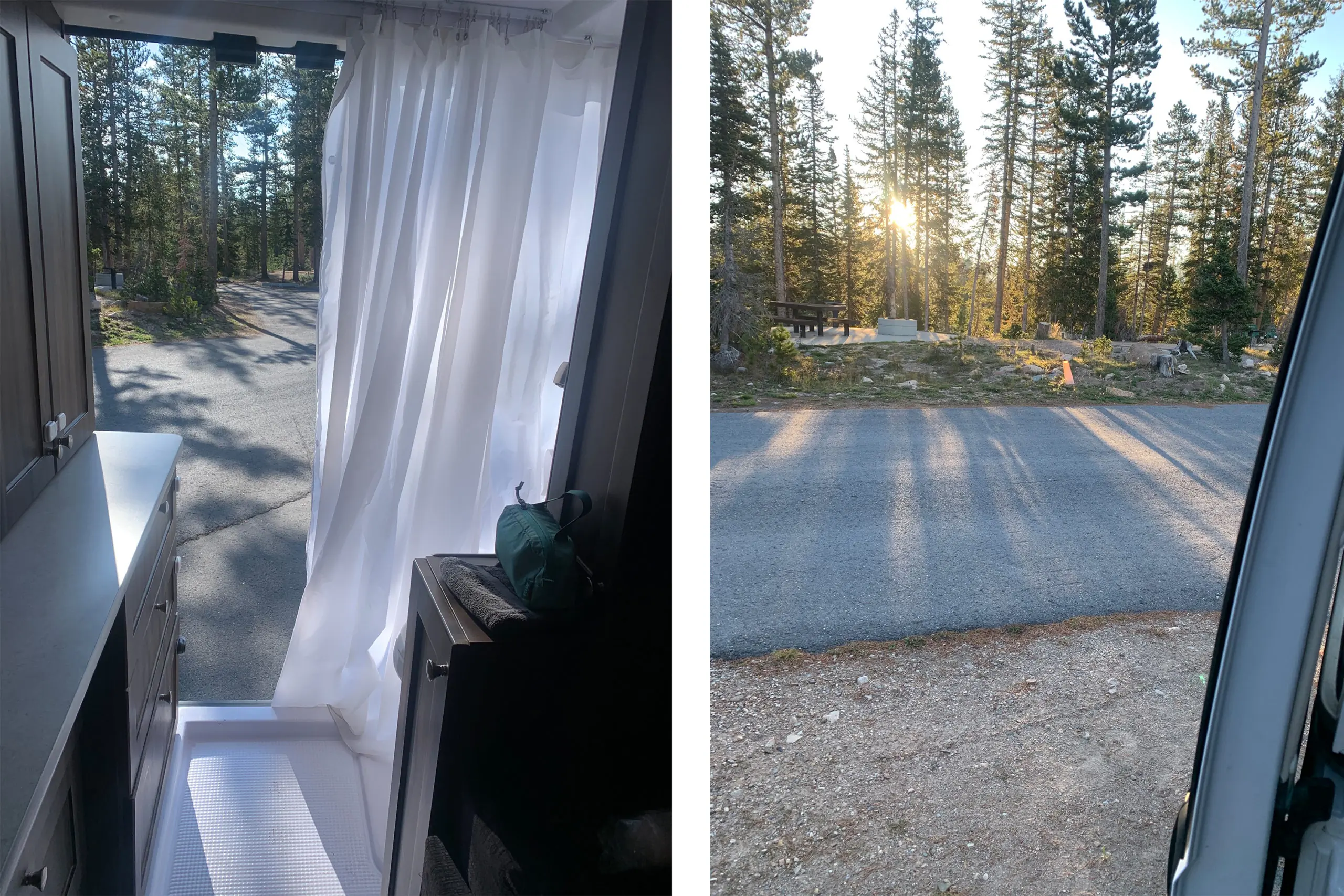View from an 18-foot-length campervan comes with a toilet and shower area; (photo/Mary Murphy)