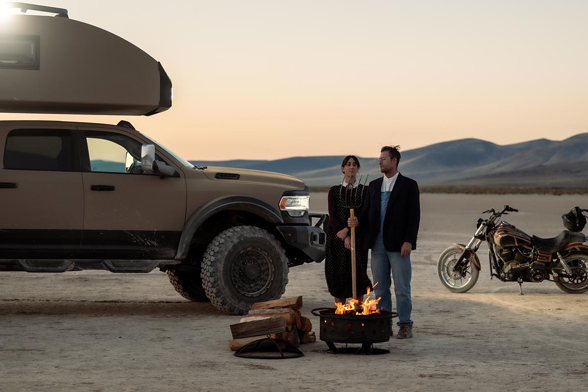 If Mad Max had a soft spot for creature comforts, the HILT might be his vehicle of choice for surviving the wasteland. That’s clearly reflected in the adventure truck’s marketing, which includes desert caravans, Burning Man-style fire twirlers, gambling with dogs, and even a recreation of American Gothic.
