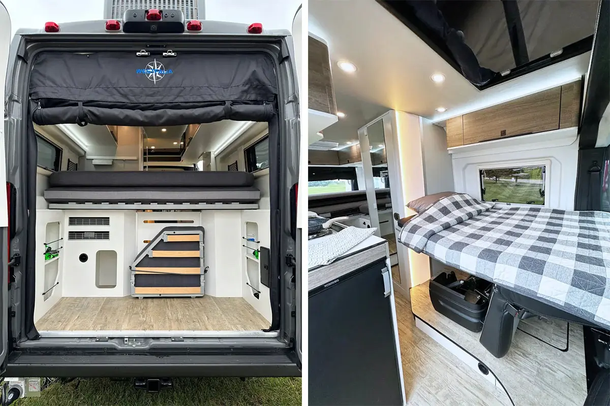 Measuring a snug 20 feet, 9 inches, it features an “easy” foldout combination for the front bench seat/bed and storage for larger gear like paddle boards and mountain bikes.
