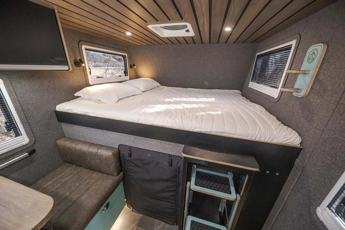 “That’s a result of building it on a regular cab and planning our angles appropriately so we’re not too fully extended past the wheelbase,” he said. “Other 4×4 fixed campers typically won’t be able to go as far into the backcountry because they’re just too long.”