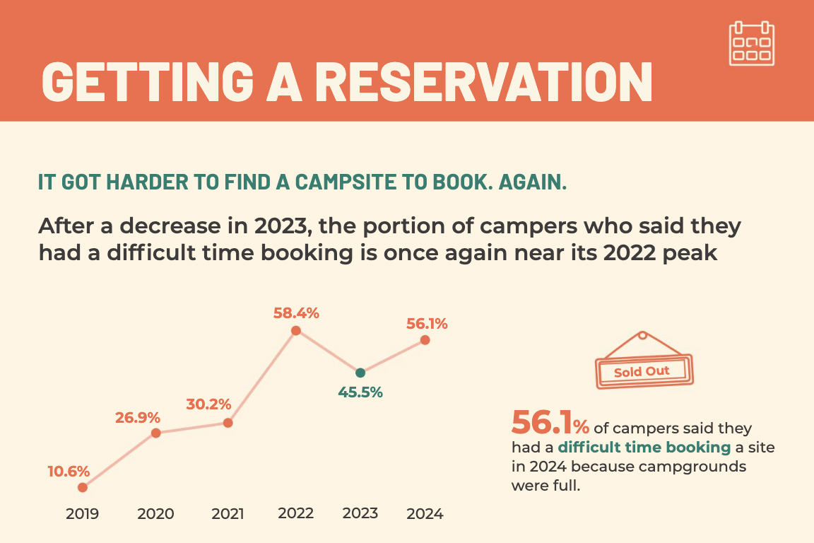 In fact, other stats from the survey suggest a renewed commitment to enjoying the outdoors. More than 70% of campers in 2024 said they used all their reservations — a significant increase from the 59% who used them all in 2023.