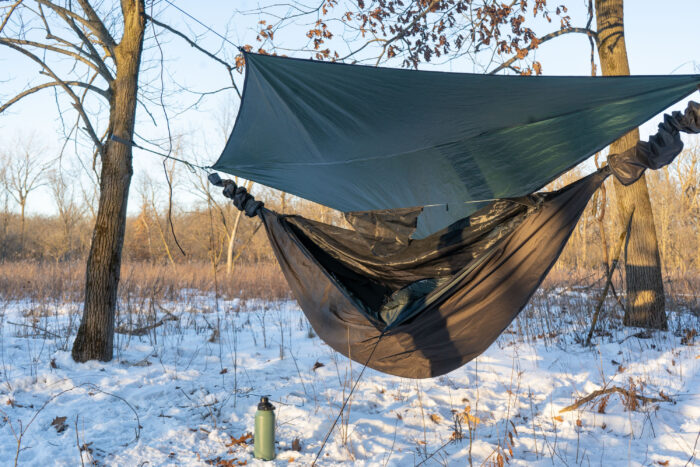 Insulating underquilts keep you from losing body heat through your exposed underside while lying in a hammock. On warm summer nights, an underquilt may not be necessary, but when it’s frigid out, they’re a must-have.