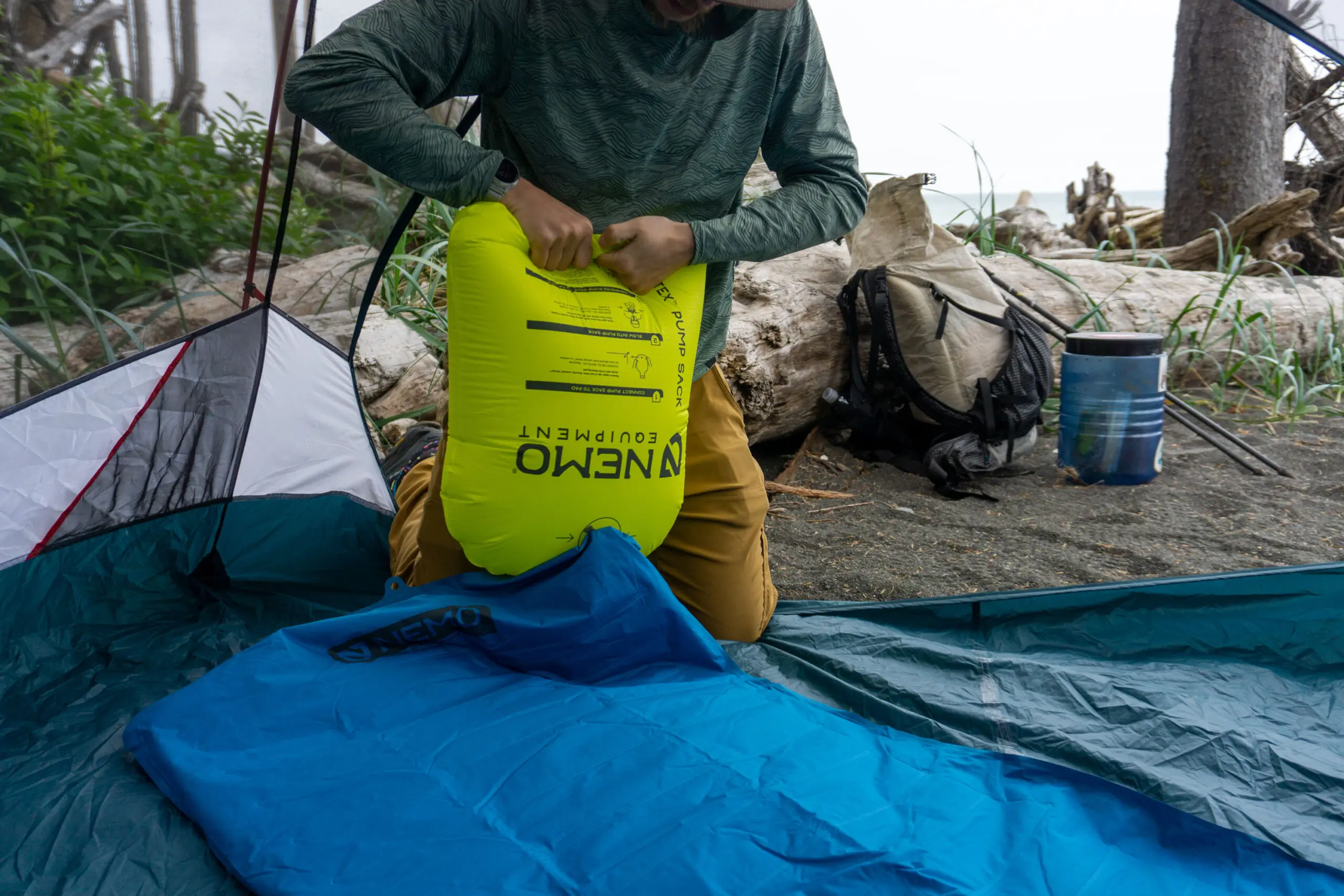 In addition to valves, many pads now come with inflation bags. The Therm-a-Rest MondoKing 3D comes with an inflation bag integrated into the stuff sack. The Big Agnes Pumphouse Ultra ($35) is sold separately and works as both a dry bag and an inflation bag. Utilizing these pump sacks has multiple benefits, and they are easy to use once you get the hang of them.