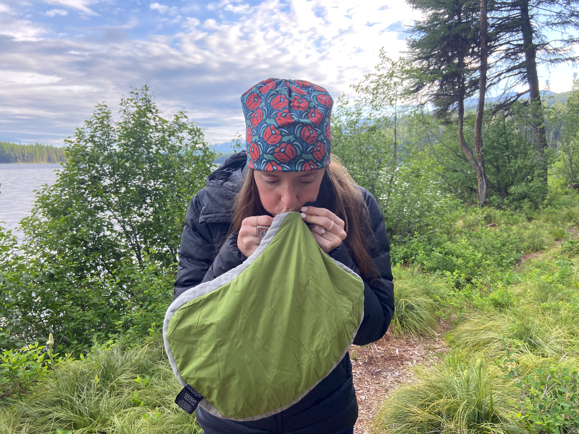 If you turn it inside out and stuff it with clothes, it makes a great pillow. And at just an ounce, you’re not going to find a lighter option. Also, you’re using gear that you’d be bringing with you anyway, so you don’t have to save space for a pillow.