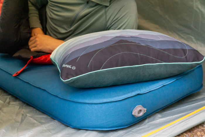 We’ve found that a pillow that combines foam cushioning and an air core, like NEMO’s Fillo, is a great compromise between the two. Upcycled foam from the brand’s production process is used on the head side, and the core is inflatable for extra loft.