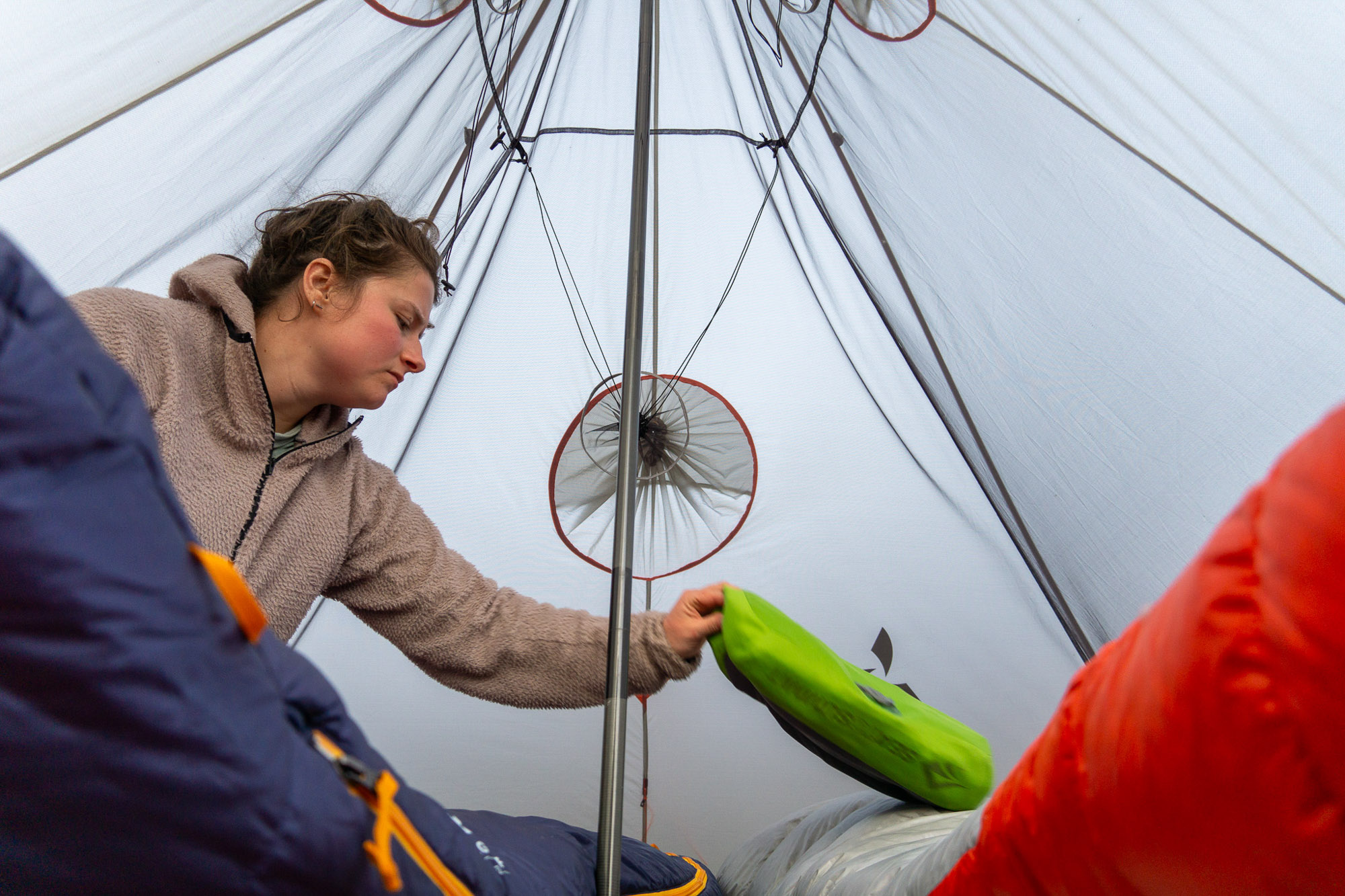 Many tents have elastic mesh nets stitched into the inside. This helps organize smaller items in your tent like the aforementioned headlamp, multitool, spare socks, and anything else that will fit.