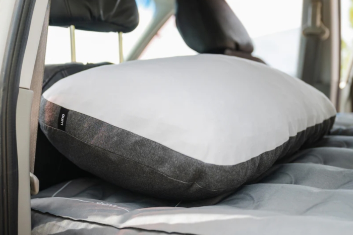 When choosing a car camping pillow, comfort is king. Go for a bigger pillow and one that uses foam filling. Foam pillows like the Therm-a-Rest compressible pillow and the REI Co-op Trailmade Mummy Bag Pillow use foam cutaways from the brand’s sleeping pad construction. When unpacked, the foam puffs up and feels like a traditional feather pillow for a great night’s sleep.