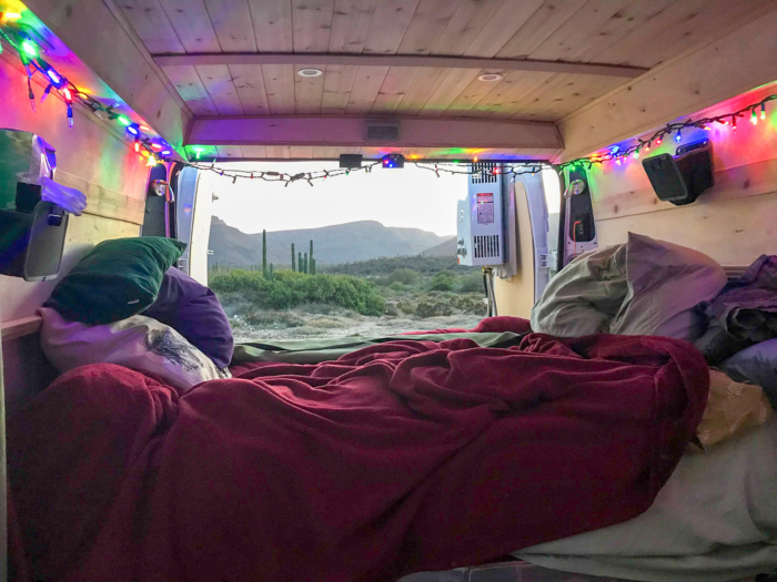 One of our other main testers, Karuna Eberl has spent decades backpacking, tent camping, and van-life-ing around the West and Baja, down to the Florida Keys, and around Europe. She also has a background in filmmaking, which adds to her persnicketiness about using lighting to create a feel-good mood.