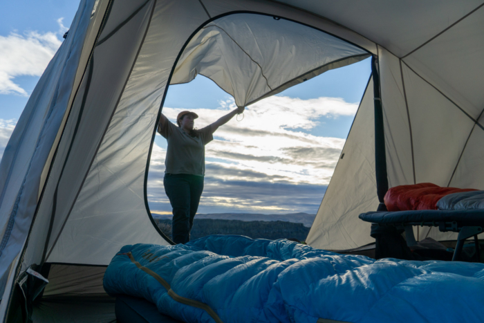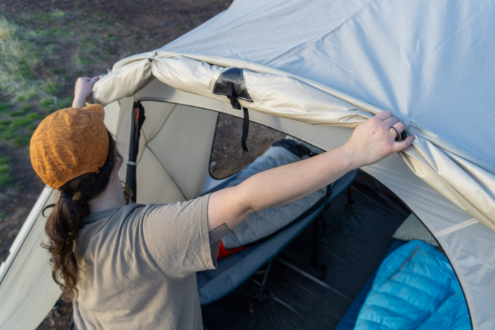Colorado camper Meghan LaHatte also tested this tent with the newly released Base Camp Vehicle Connector, an awning specially made to interface with the 4- and 6-person Base Camp tents and connect your living space to the back of your vehicle. This breezeway made a killer spot to park a quartet of camp chairs, and she dug the versatile accessory.
