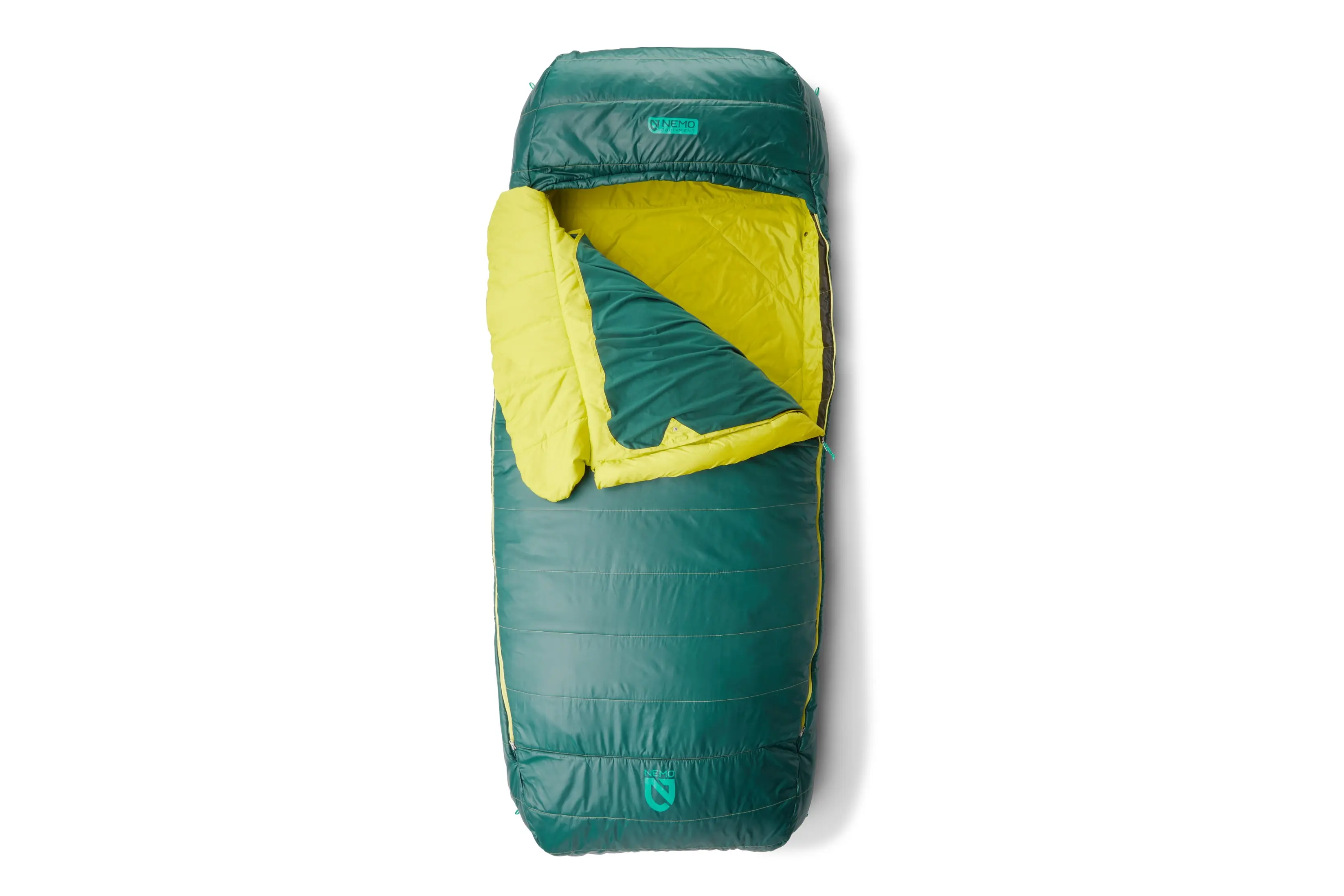 Hoping to snuggle up under the stars? Then it’s great to have two sleeping bags that zip together. The Kelty Galactic is a great budget-friendly option that zips together. Its rectangular shape also maximizes the room for two.