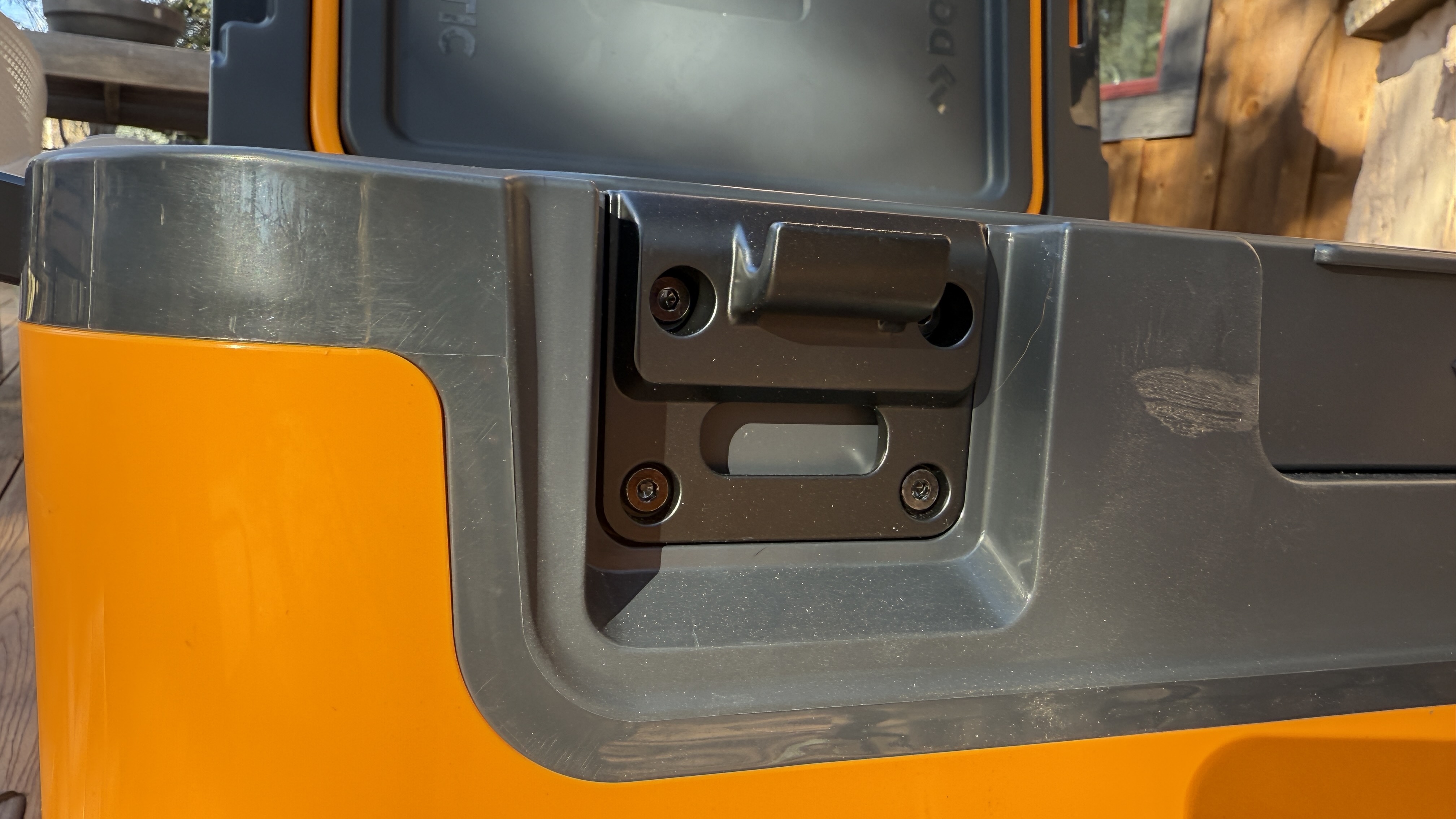 Take the top, for example. The rubberized surface isn’t just grippy; it’s functional. I’ve stacked duffels, cutting boards, even a portable stove on top, and nothing slipped around. I don’t have a second Dometic to stack on top. But if I did, I could easily put another cooler there without fear of it crashing downward.