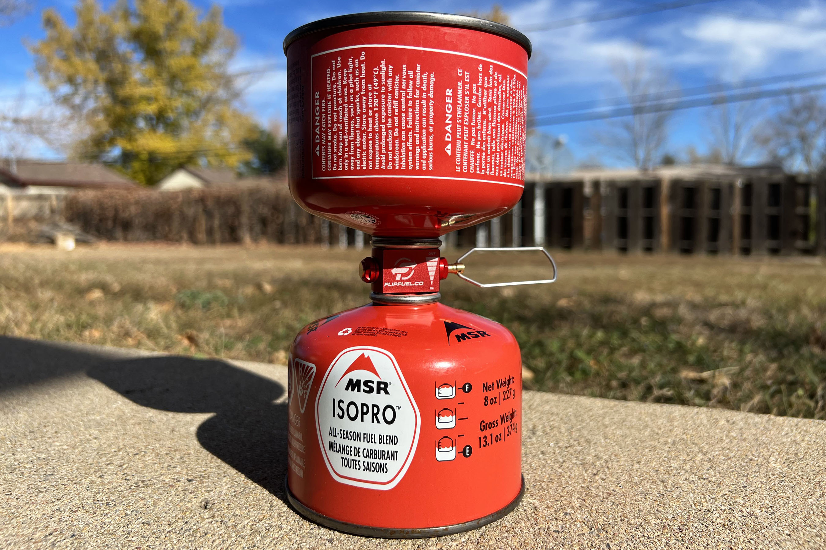 The only downside? It only works with backpacking fuel canisters (like those described above). For now. But on the FlipFuel website, it says that an attachment for those larger canisters (like the classic green Coleman propane canisters) is on its way.