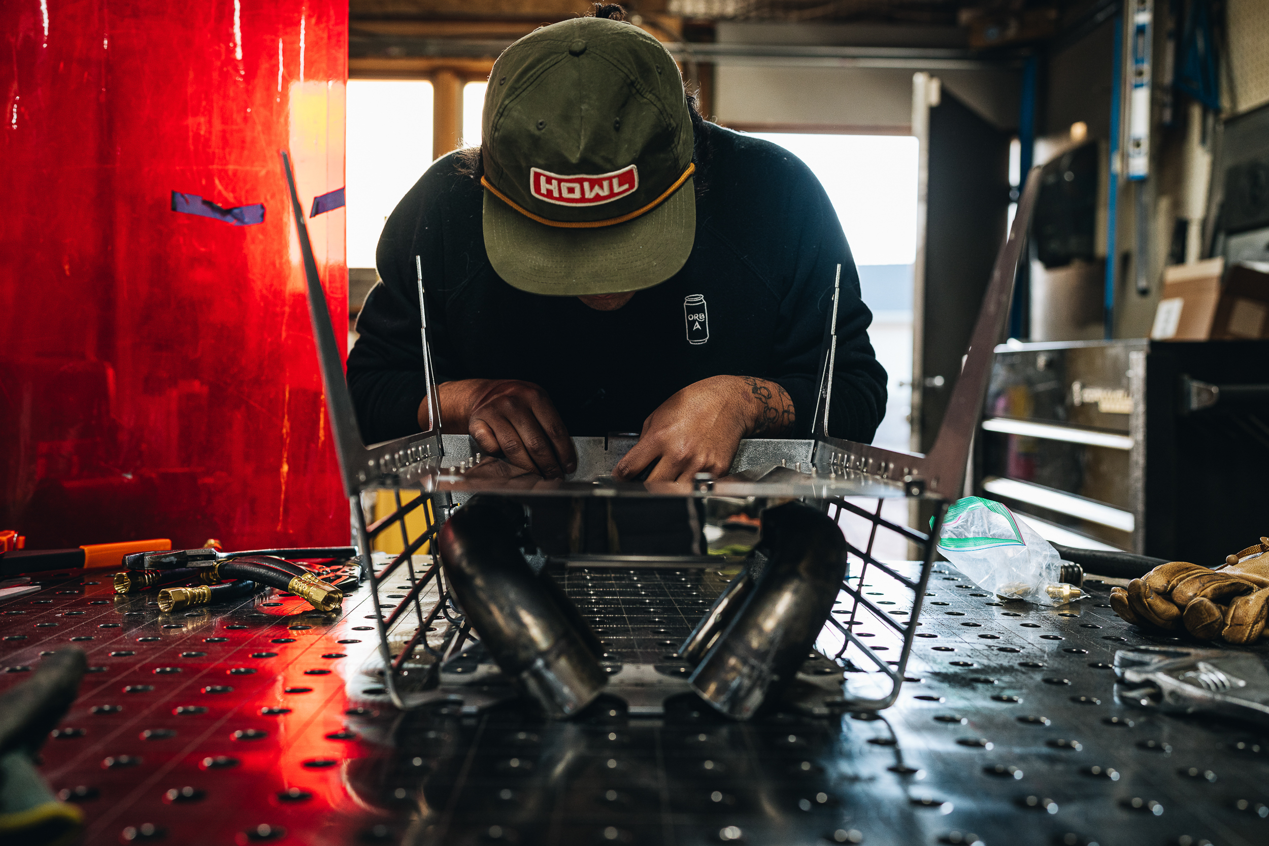 The hefty 34-pound weight of the Howl R4 hinted at the tank-like build quality. A single sheet of laser-cut ⅛-inch-thick stainless steel bent into form via a hydraulic press makes up the exoskeleton. Aircraft aluminum and brass complete the build.
