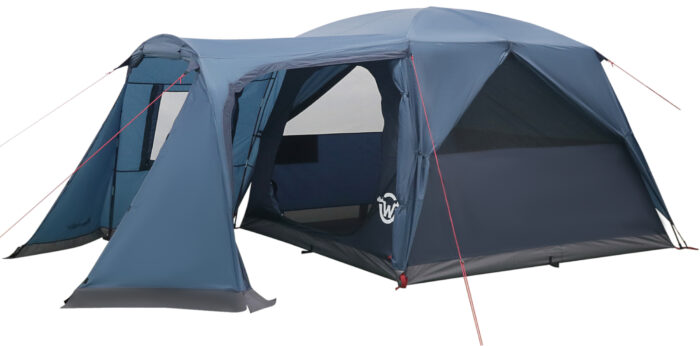 This tent’s ceiling peaks at 6 feet, and there are 116 square feet of space underneath. As an eight-person tent, it can also be divided into two rooms. The vestibule adds another 51 square feet of room and has two entrances and a window. Furthermore, there’s a full-size rear door as another point of entry.