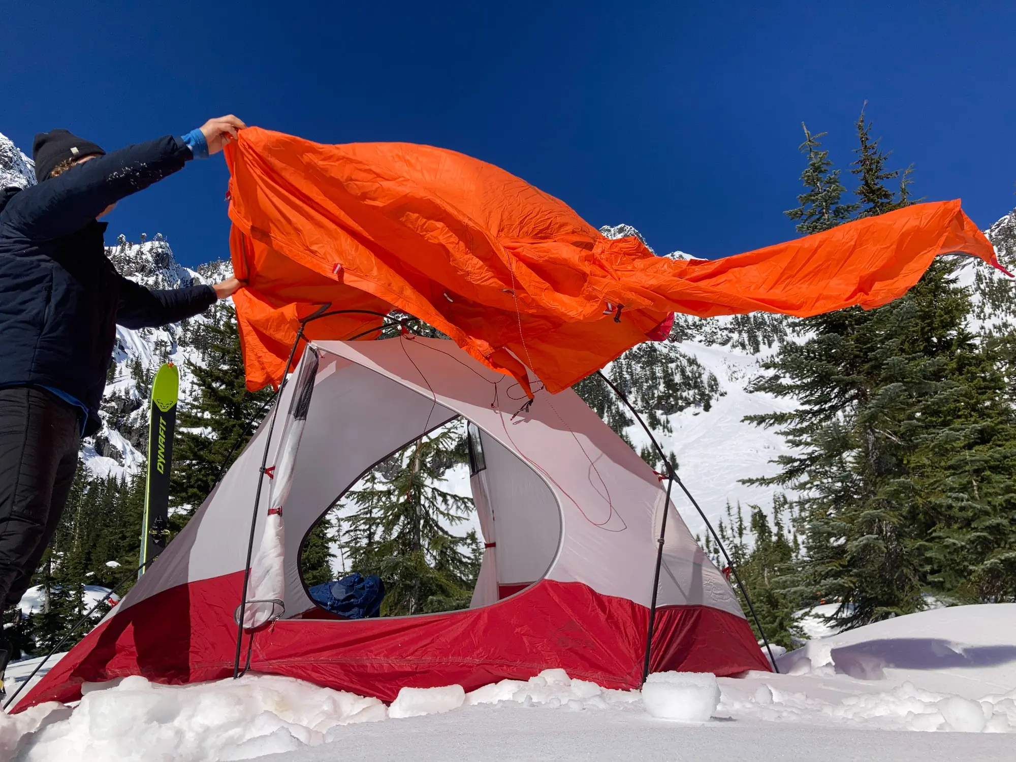 For most of my winter and spring ski trips, I’ve used a single-wall tent such as the Black Diamond First Light: simple, durable, and … cramped. Though this type of shelter is bomber and built for extreme weather conditions, it isn’t necessary much of the time, especially on spring ski traverses or early-season backpacking trips when temperatures are rising and the weather is shifting.