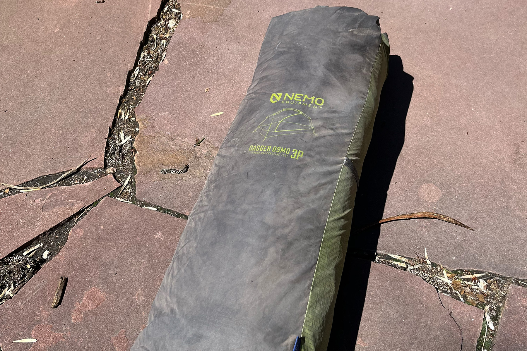 GearJunkie reviewed the Dagger OSMO 2 Person tent back in 2021. That was the first time the brand debuted its proprietary OSMO material, which is PFAS-free and 100% recycled. NEMO also claims OSMO offers four times longer-lasting water repellency and stretches three times less than nylon when wet.