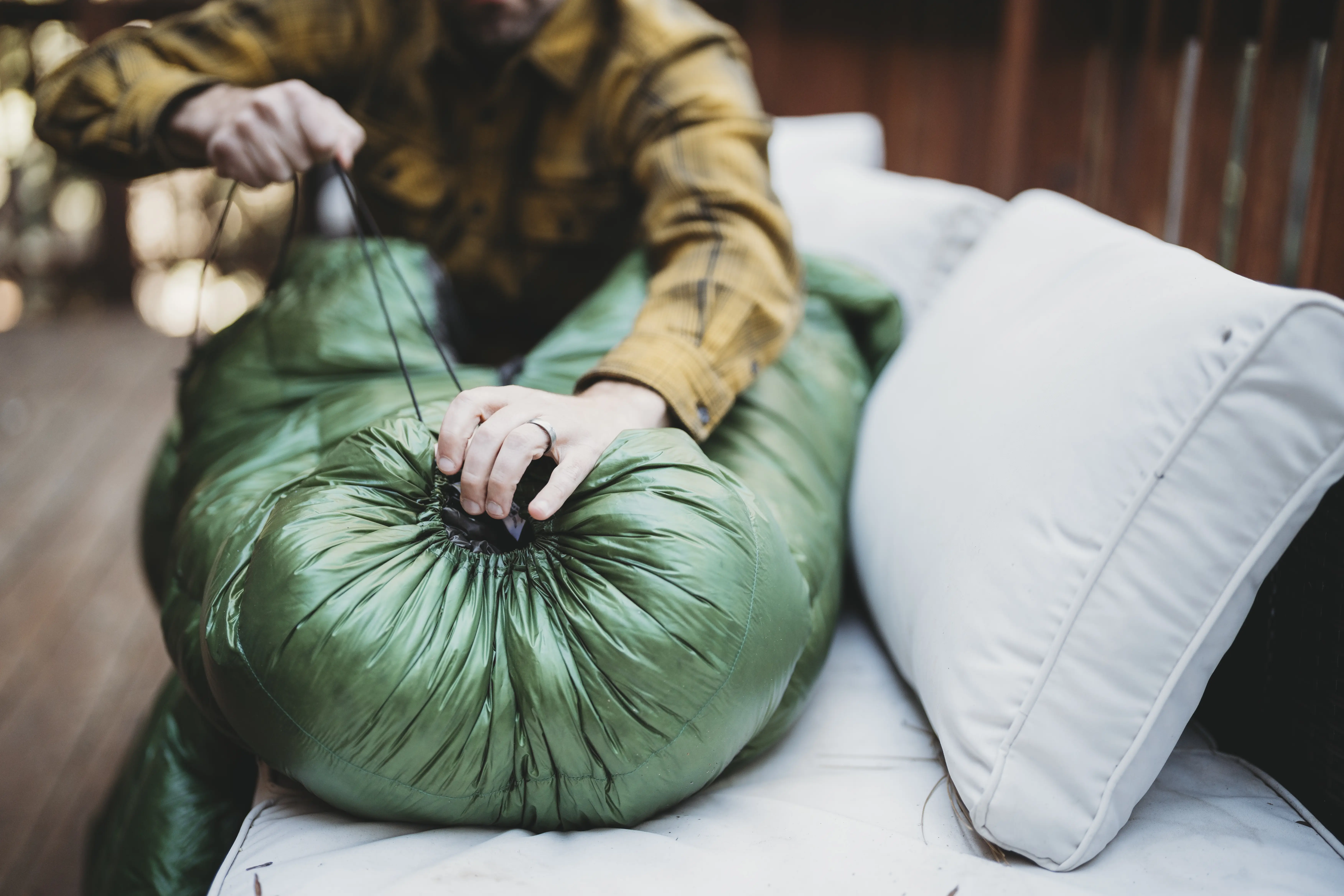 I chose the 10D fabric for both the inside and outside of my 20- and 40-degree bags. I had the option of 20D weather-resistant fabric strips added to both the top opening and foot box. This heavier fabric strip cuts down on moisture retention from breathing and toes touching the sides of my single-wall tent.