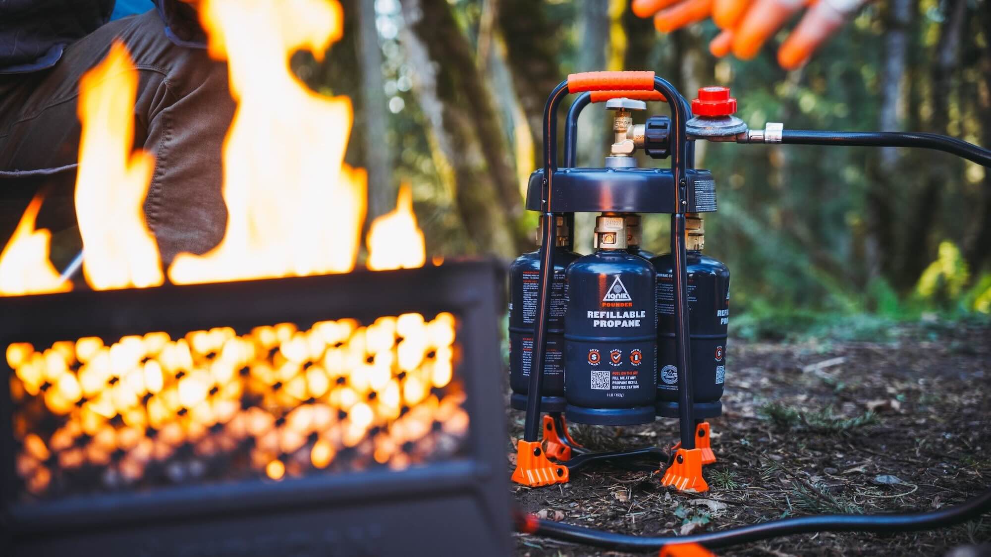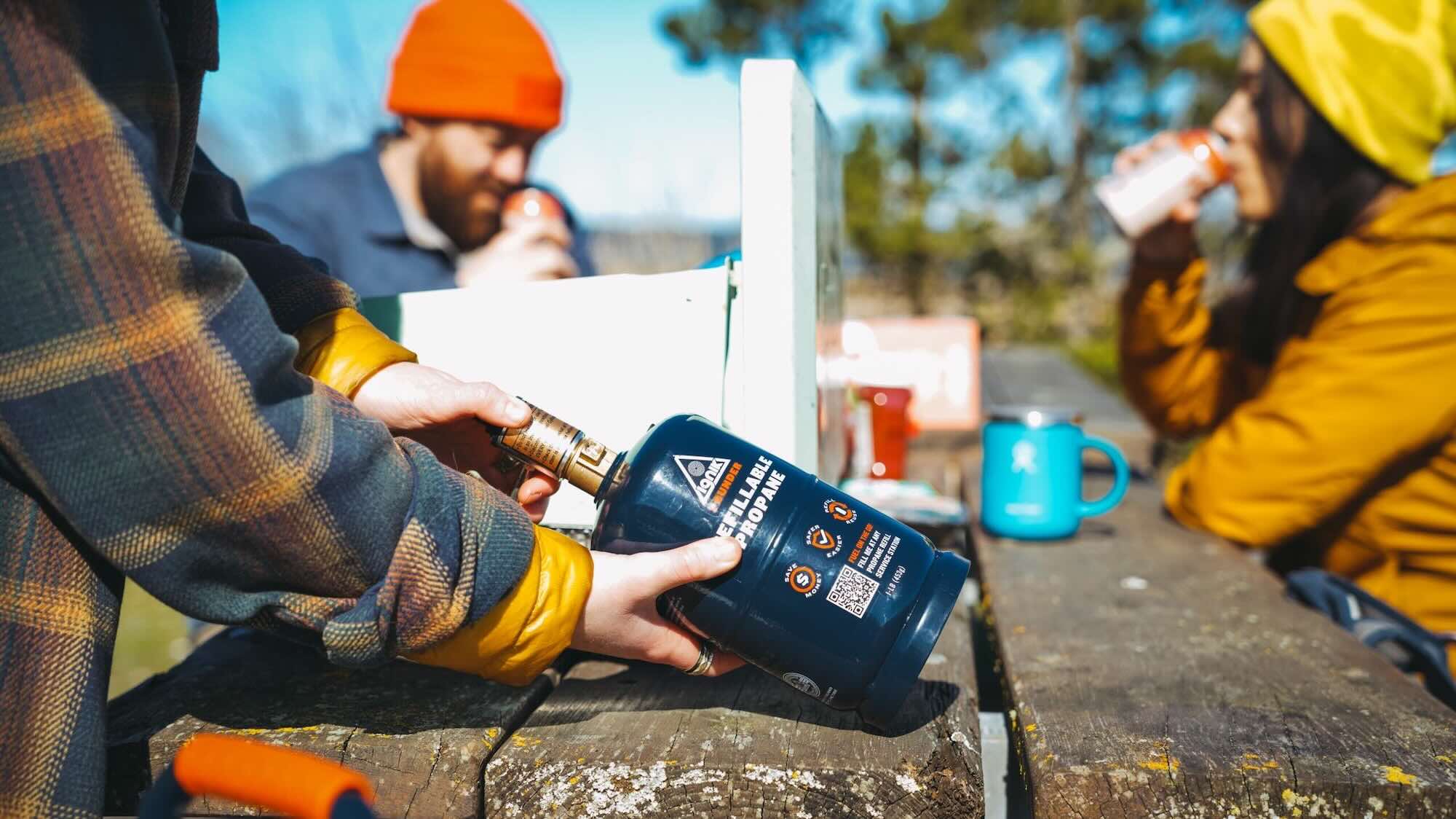 But with its new offering, it’s targeting the smaller propane canisters ubiquitous to campgrounds across North America after brand founders saw single-use propane bottles polluting the Arctic Ocean on a sailing trip and decided to take action. The TapRack Refillable Propane system and its Pounders (1-pound refillable propane cylinders) is its solution.