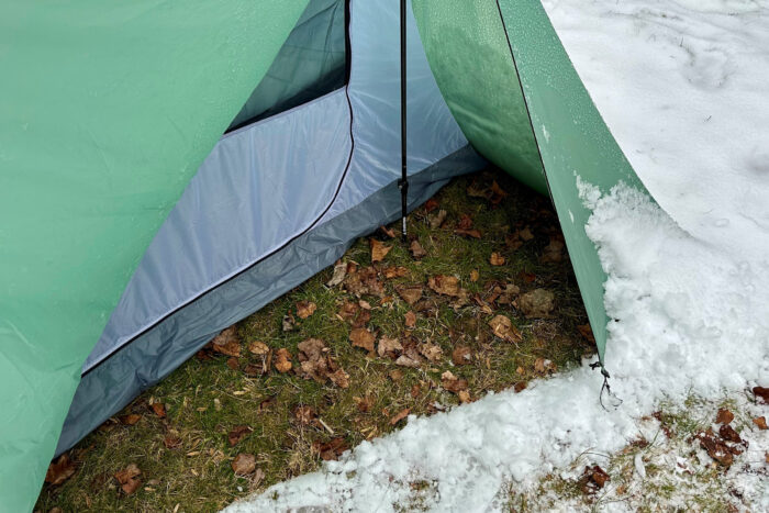 Though at no time did any moisture get inside the tent, the floor was very cold. One way to combat this would be to use a groundsheet.