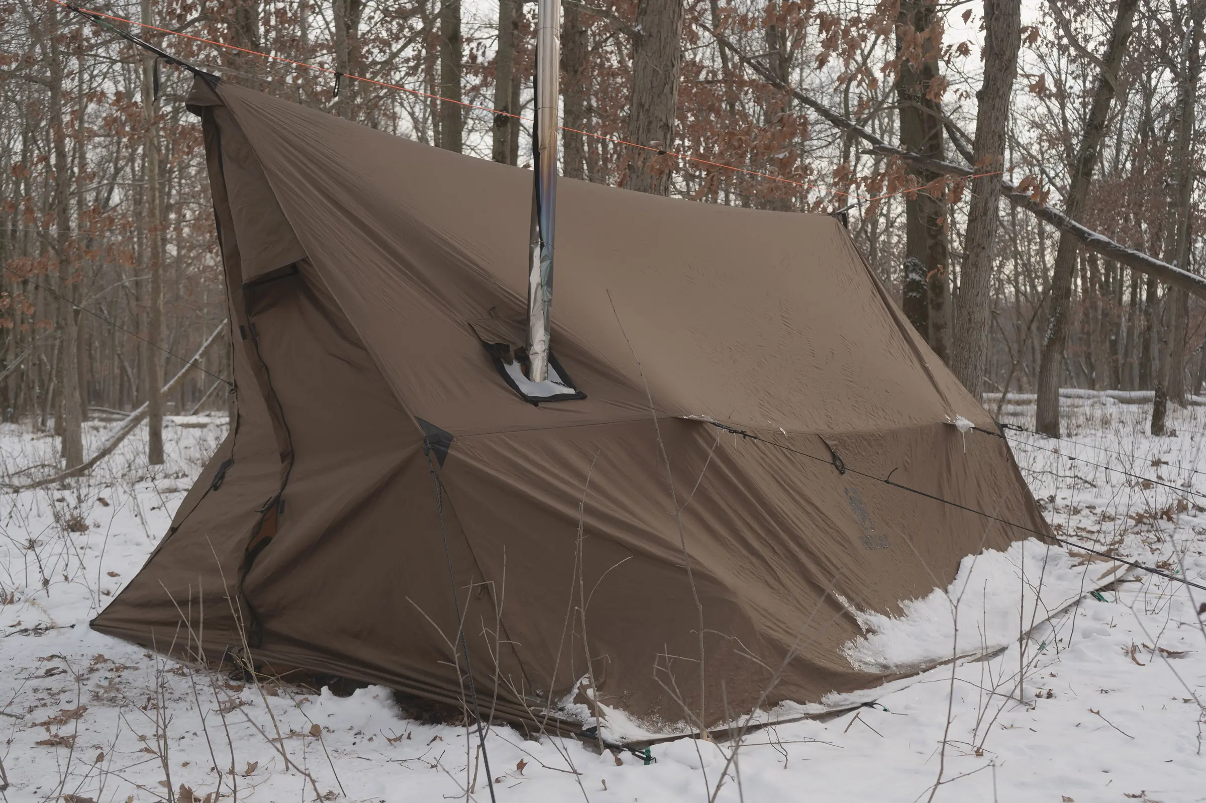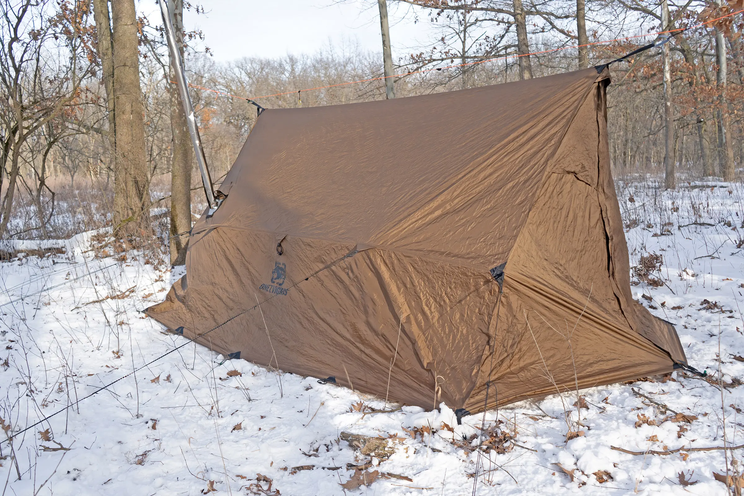So, I spent a month hauling the ROCDOMUS Hammock Hot Tent by back, car, and canoe, camping beneath it in several configurations through rain, shine, and snowy -10-degree Fahrenheit nights, to see how well it flexed.