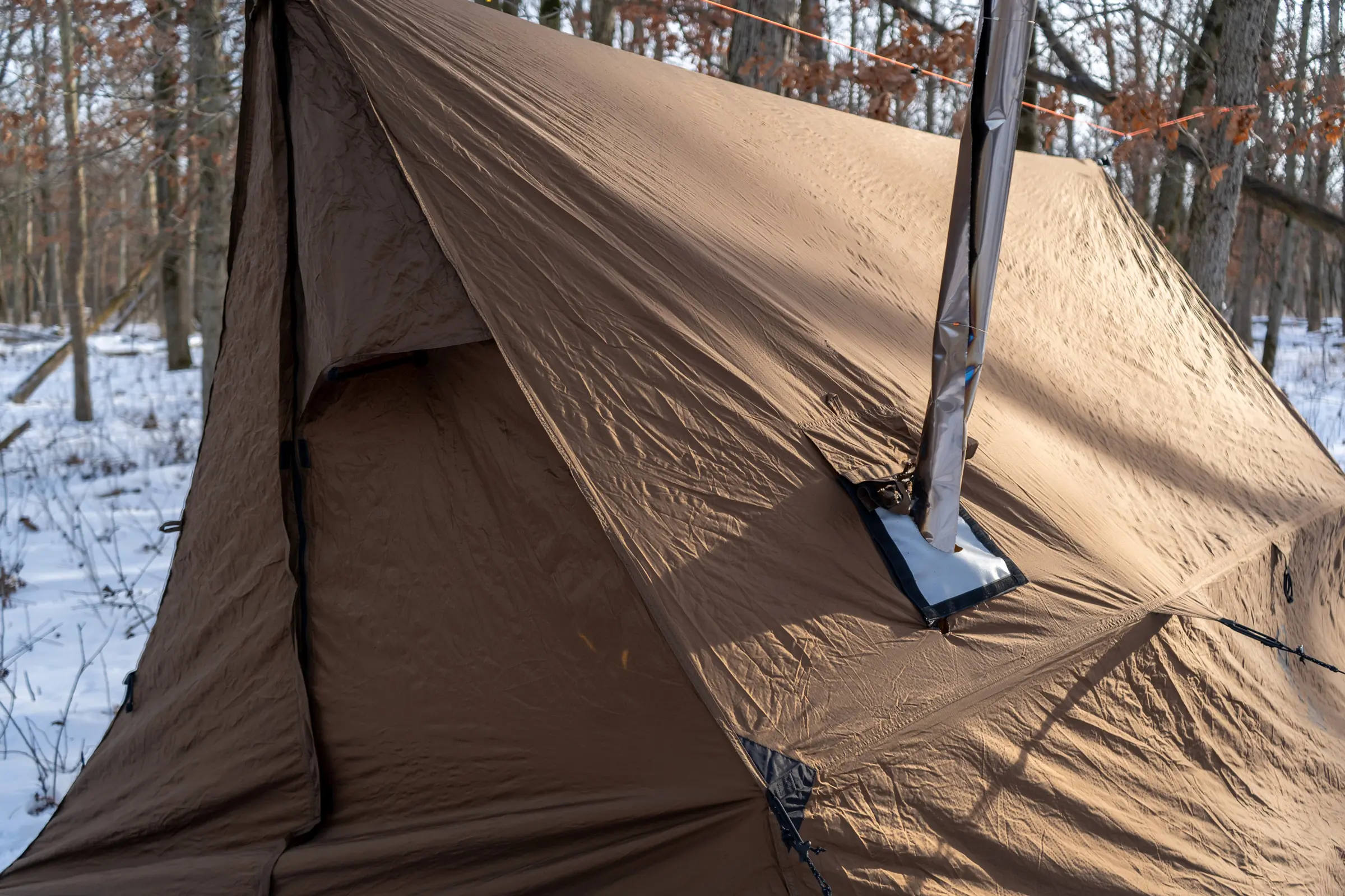 First, hot tents tend to be heavy. There are some dedicated ultralight options like the Seek Outside Redcliff Hot Tent. But generally, this style of tent leverages thicker fabrics than most regular mid-level or high-end tents used for camping. Between higher denier fabrics, robust tent poles, and stove jacks usually made from fiberglass and silicon, most hot tents run close to double digits in weight.