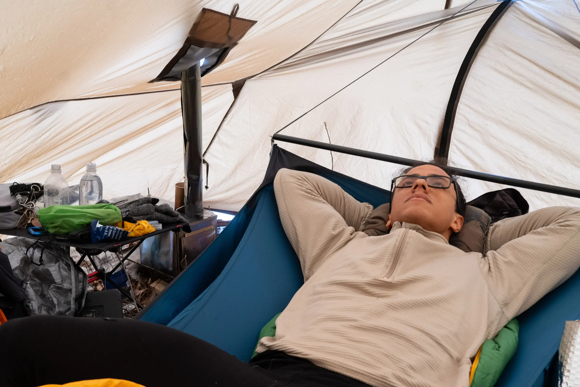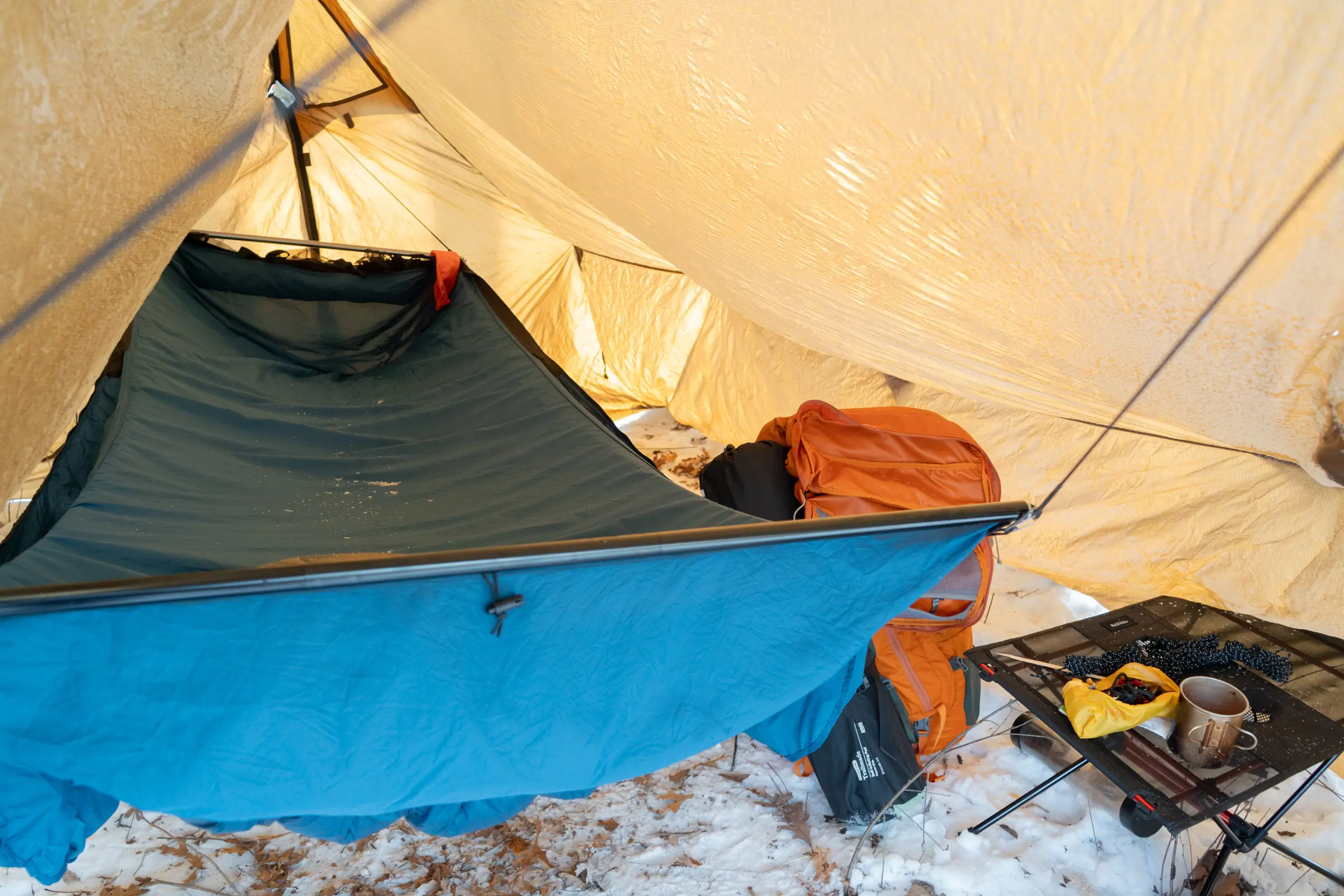 Opting for a hot tent, firewood, and stove means a little less time on the trail. But it was easily the best winter hammock sleep I’ve ever had. For solo summer trips, this tent is overkill. But for those who see the outdoors as a place to bring friends and family, it’s a malleable, spacious, and cost-effective four-season shelter.