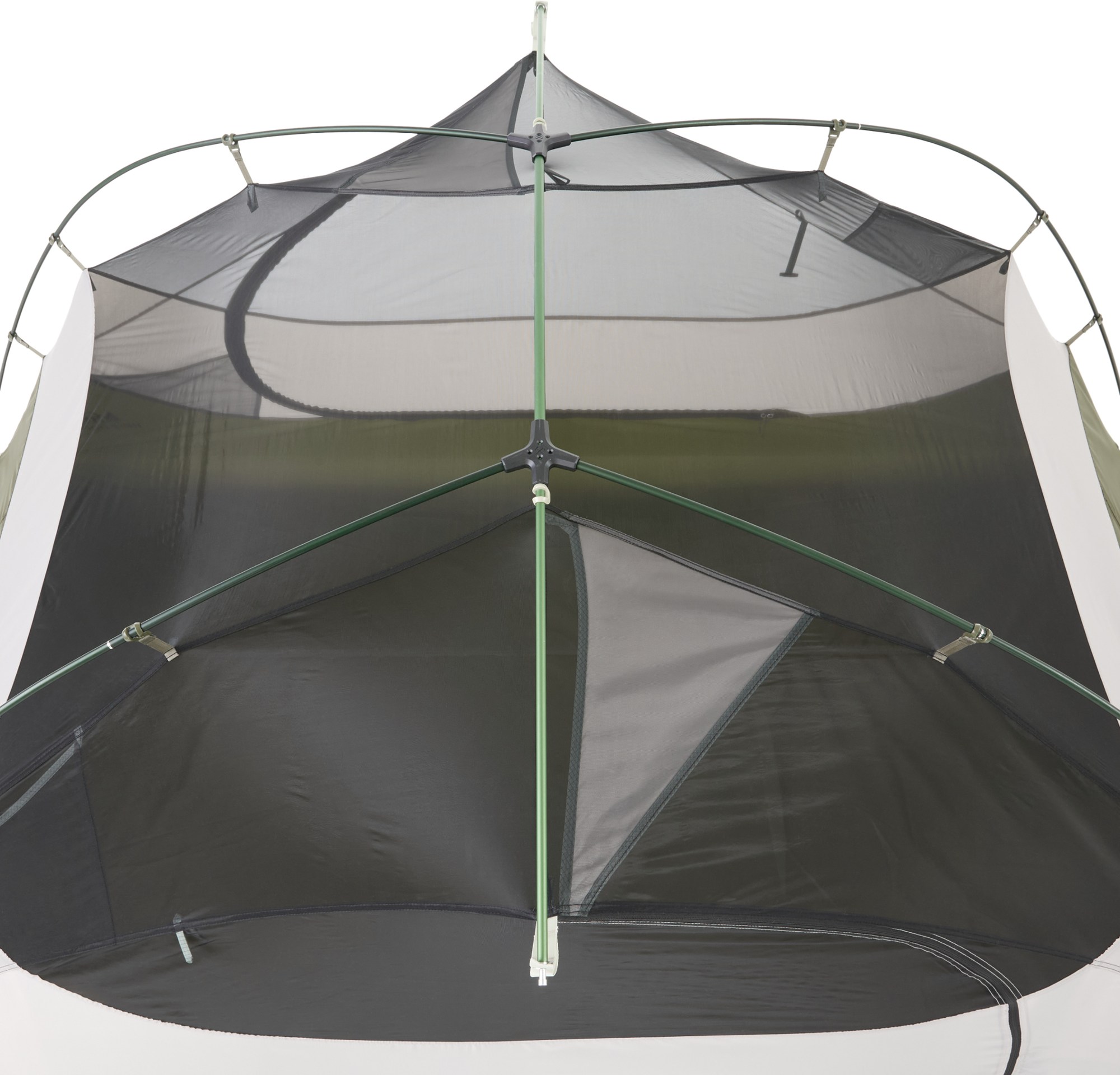 The tent pole connections also received upgrades. The HubCheck system, pictured above, allows campers to verify that the poles are fully secured with four small windows in the central connecting hubs. If you can see the light and dark green poles through those windows, you’ll know you’ve fastened them correctly.