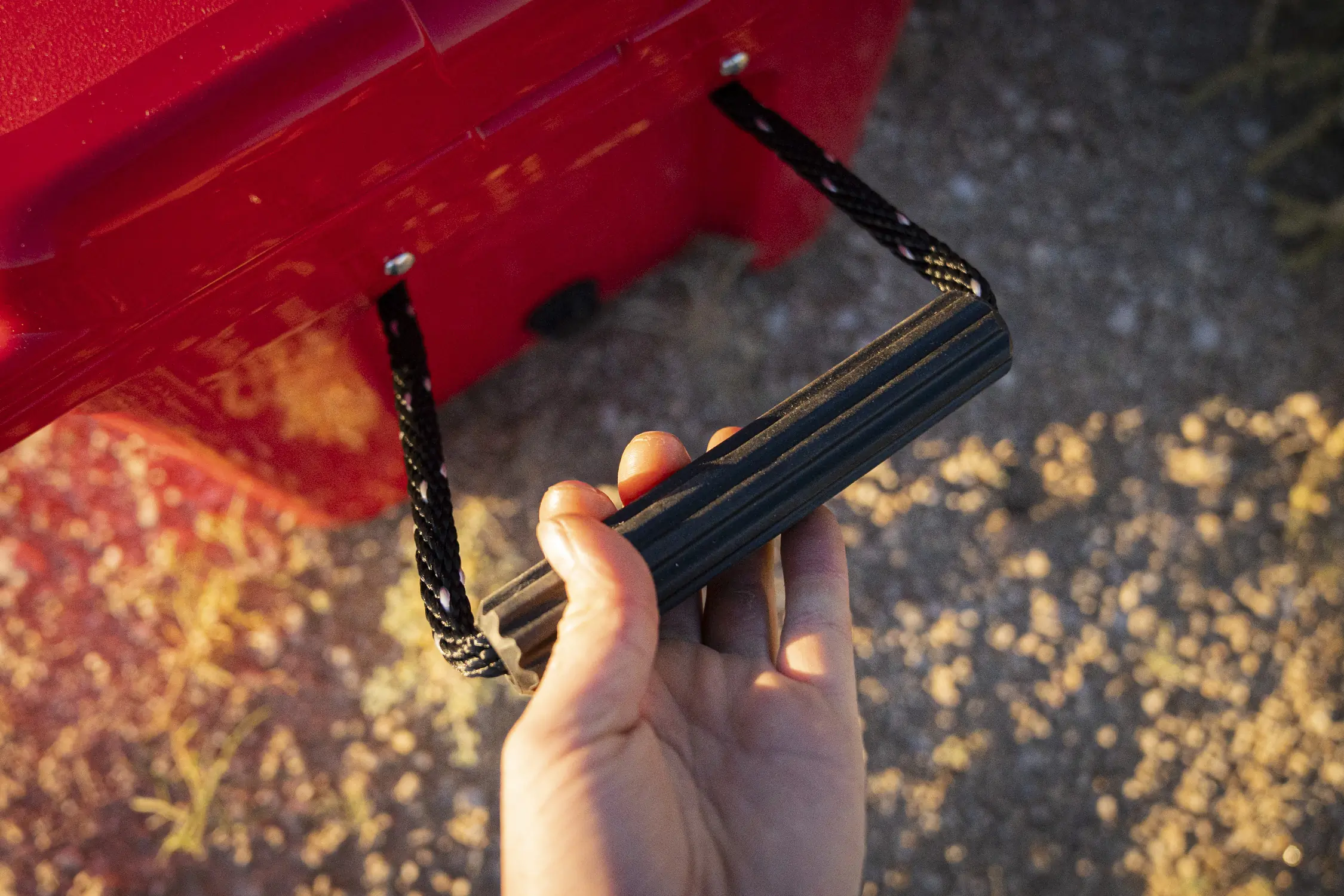 The Tundra 45 employs two burly, military-grade polyester rope straps with rubber handles that allow you to carry, drag, and haul it around as needed. The rubber handles are firm and grooved, providing a solid, no-slip grip.