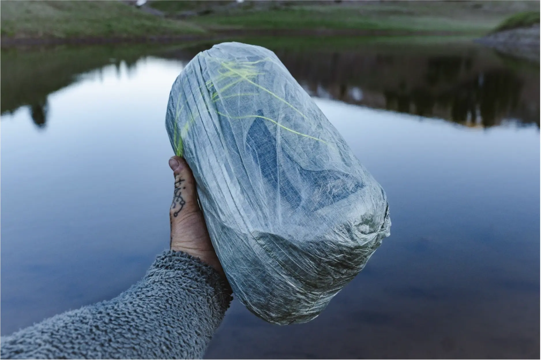Packed up, the tent gets pretty small, fitting into a roughly 3.5L DCF stuff sack. If packed tightly, it would have enough room to fit minimalist tent stakes inside as well.