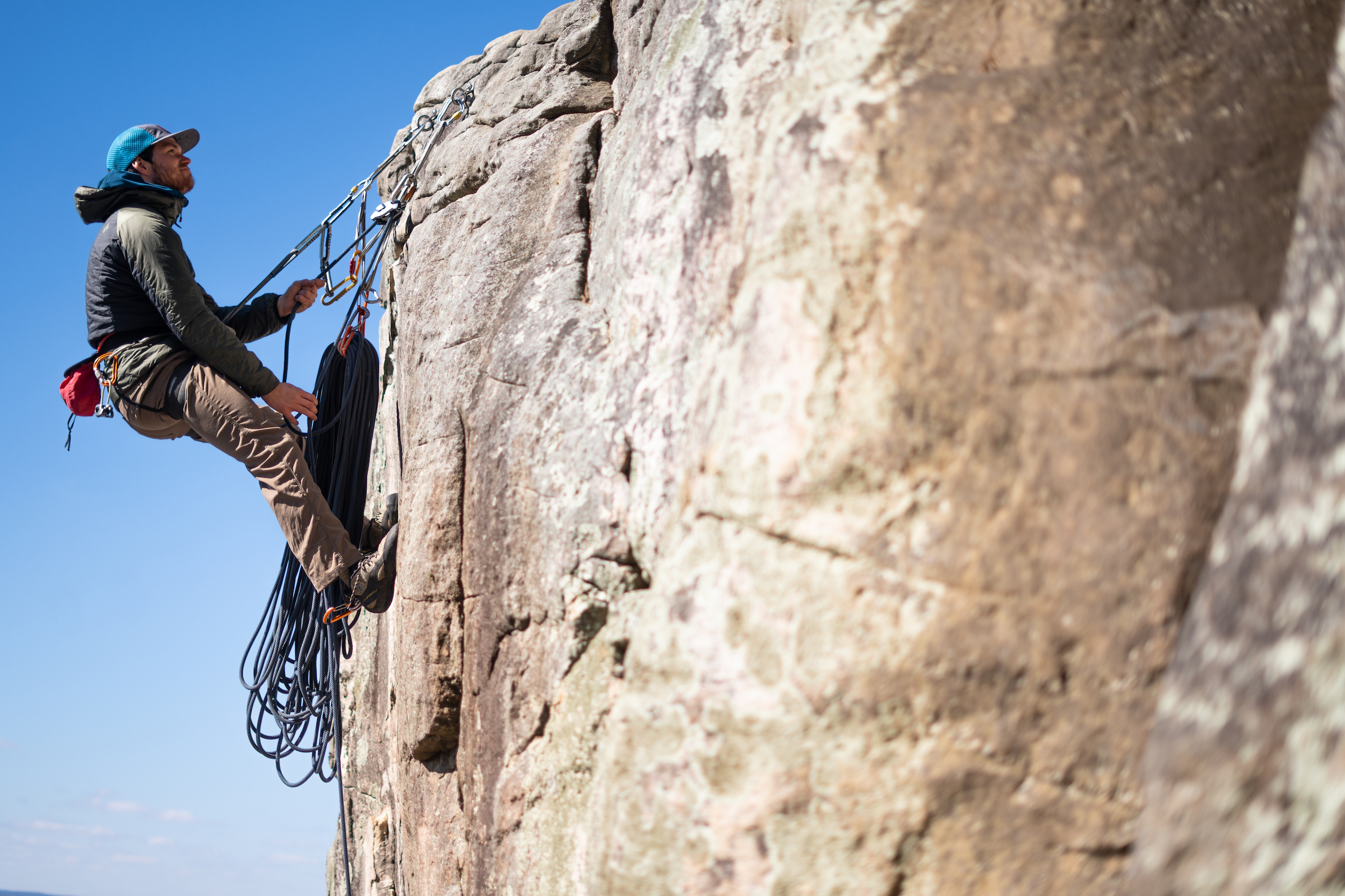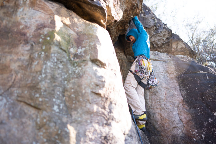 Trad and aid climbing involve techniques such as offwidth and chimneying, which require direct contact between your body and the rock. Most trad and aid harnesses are made from burly materials.