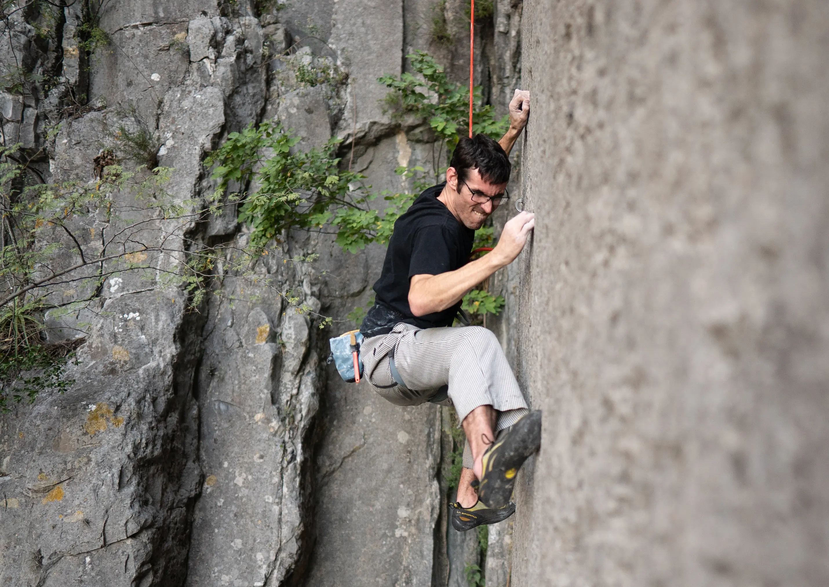 On the other end of the spectrum, harder, thicker outsoles are ideal for vertical routes with tiny footholds. On the famous Dawn Wall on El Capitan, Tommy Caldwell and Kevin Jorgeson utilized La Sportiva TC Pros with firm rubber outsoles to stick to minuscule quartz crystal footholds. Harder rubber compounds also tend to last longer before they require resole or replacement.